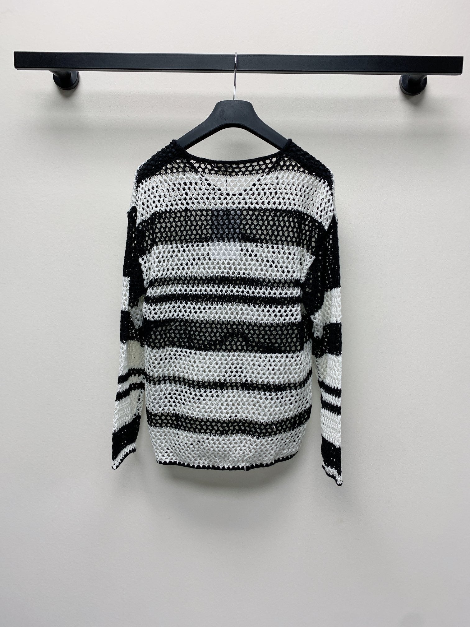 Celine 25 Hollow Crochet Cardigan Black White Wool Polyester 277568