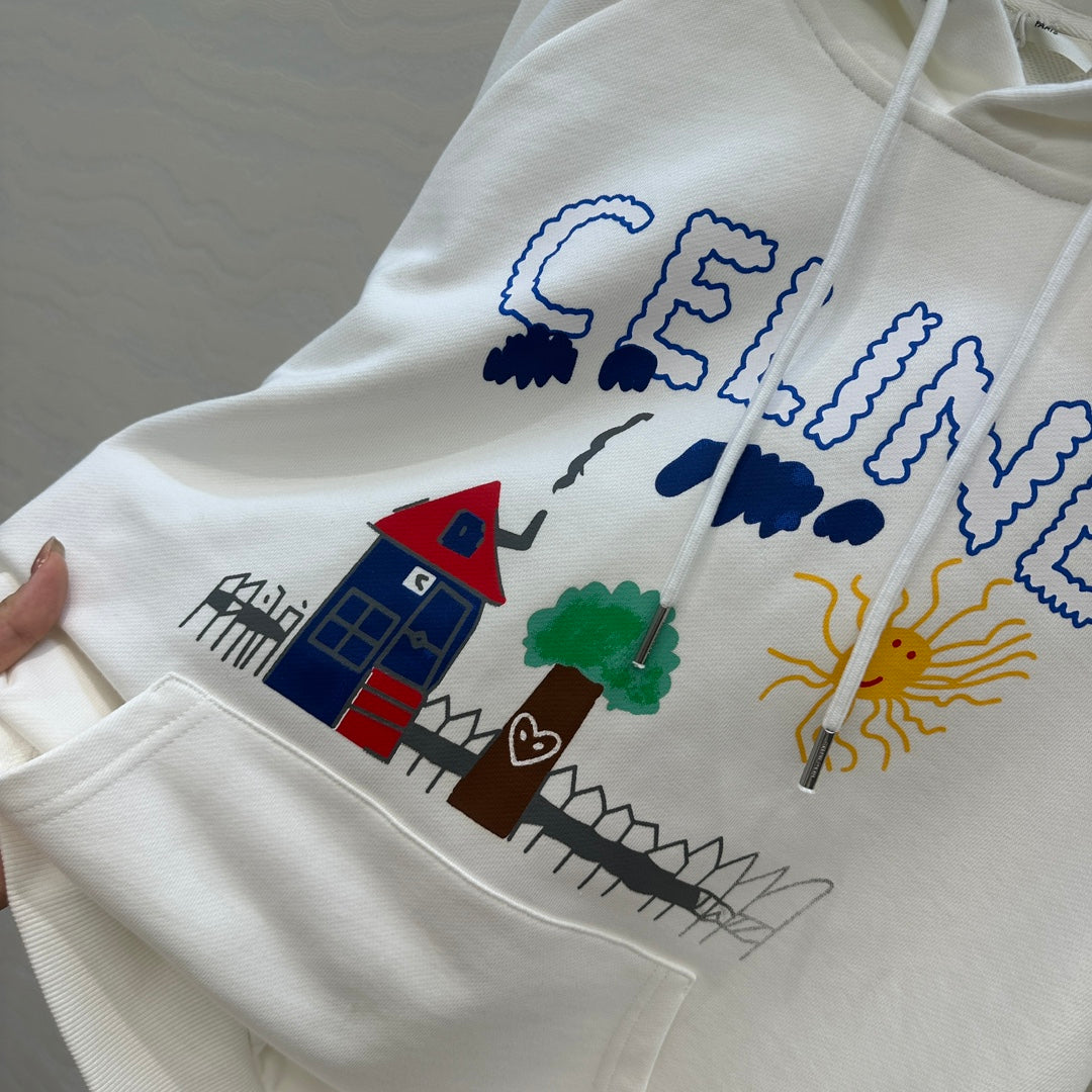 Celine 25 Hooded Sweatshirt White mix colors Cotton