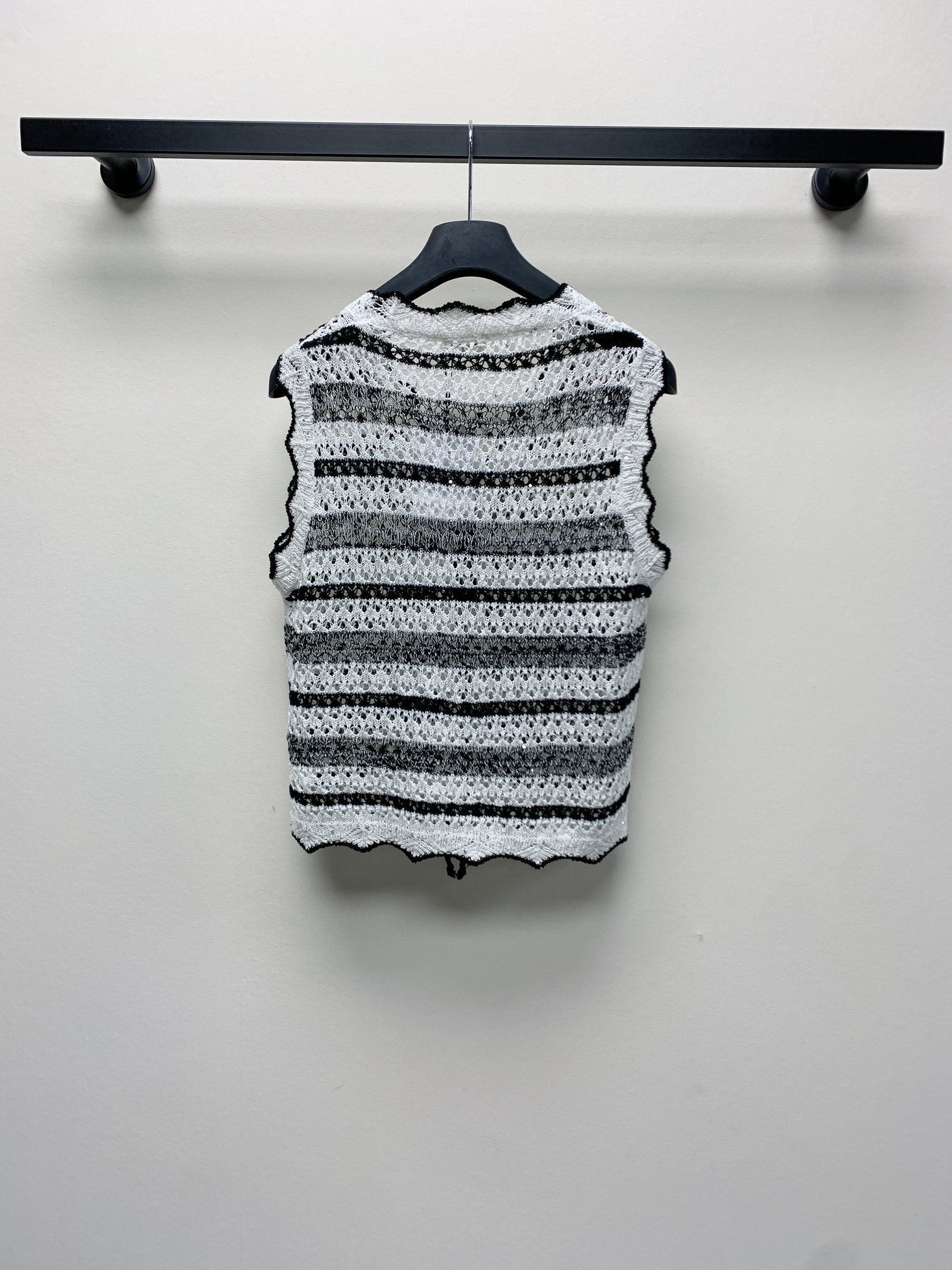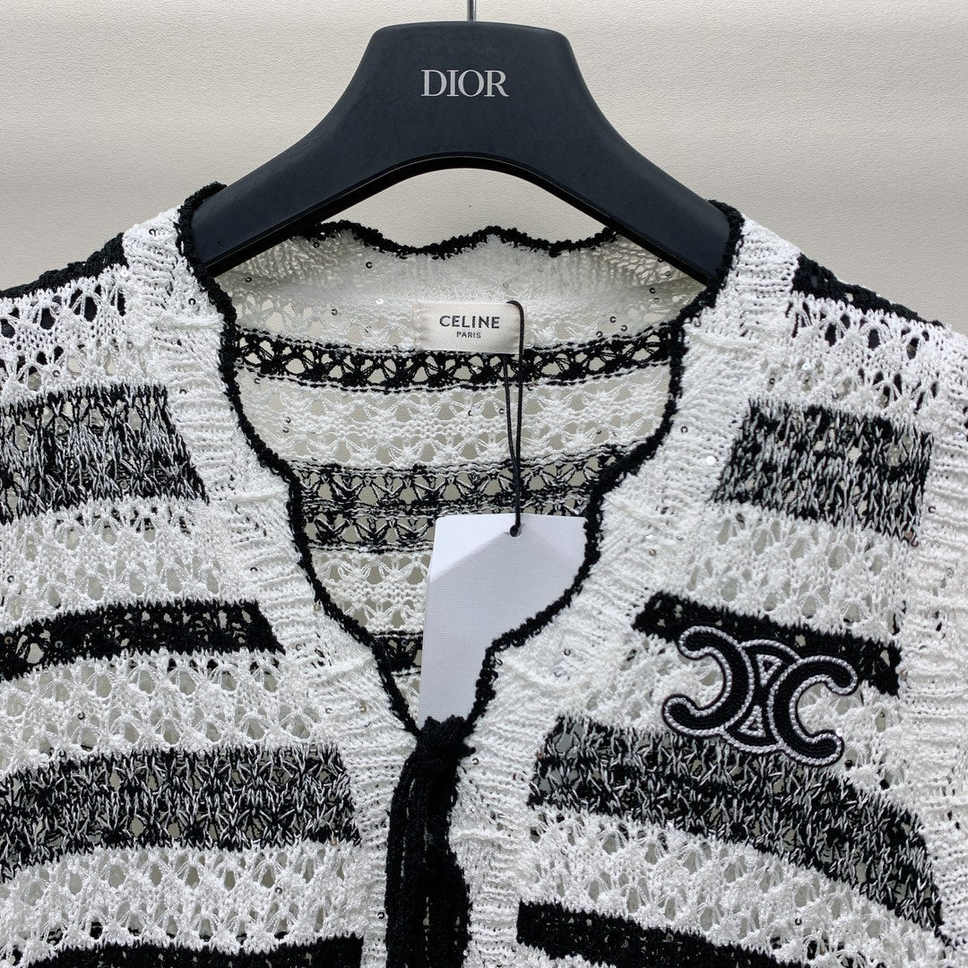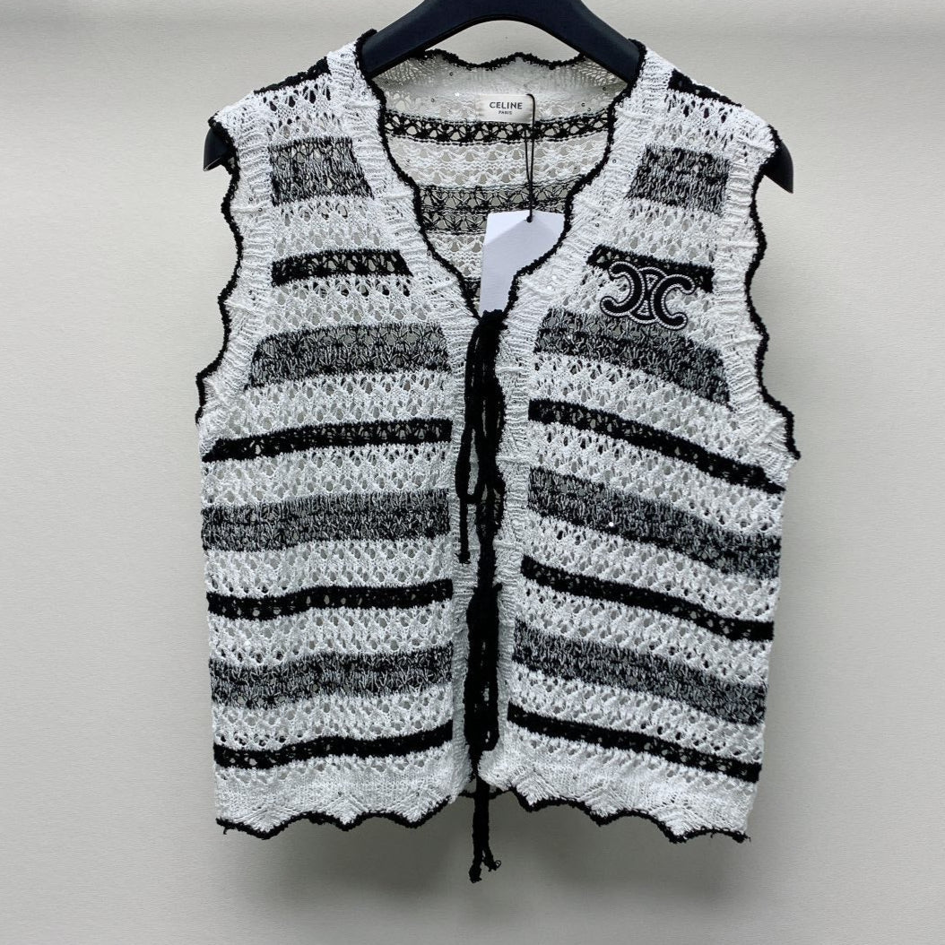 Celine 25 Striped Sleeveless Vest Black White Wool Polyester 277571