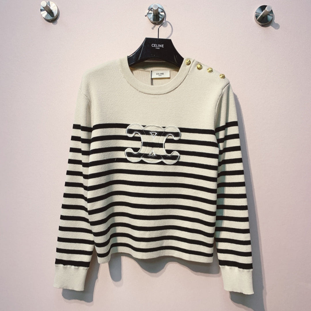 Celine 25 Striped Sweater Cream Black Wool 293418