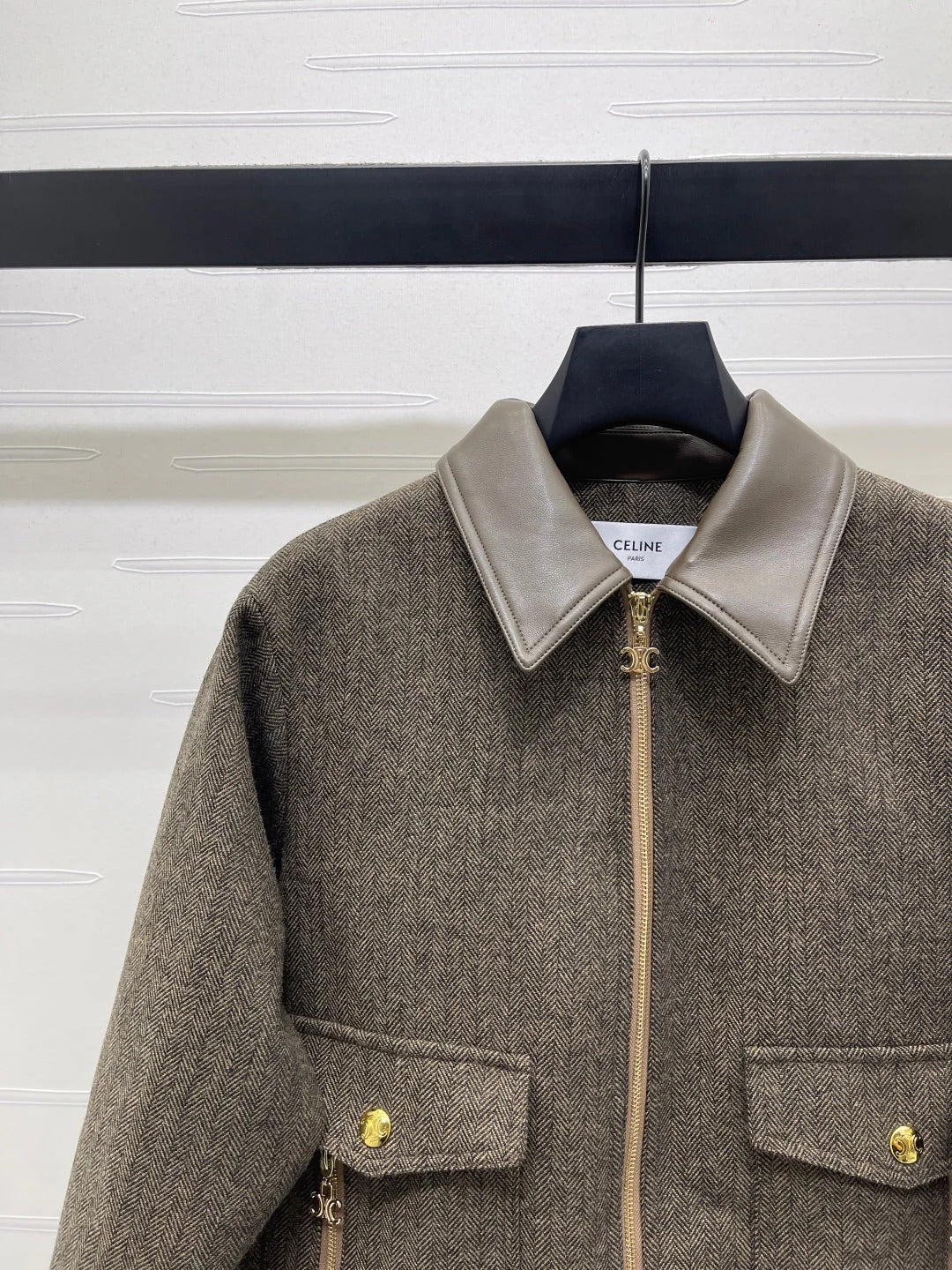 CELINE 25S PU LEATHER JACKET WITH LAPEL TRIM 0032