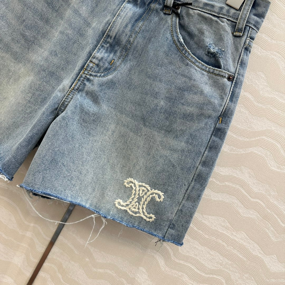 Celine Logo Embroided Denim Short Light Blue Cotton
