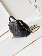 CC 24A Top Handle 23.5cm Black Wax Leather Gold Hardware 238469
