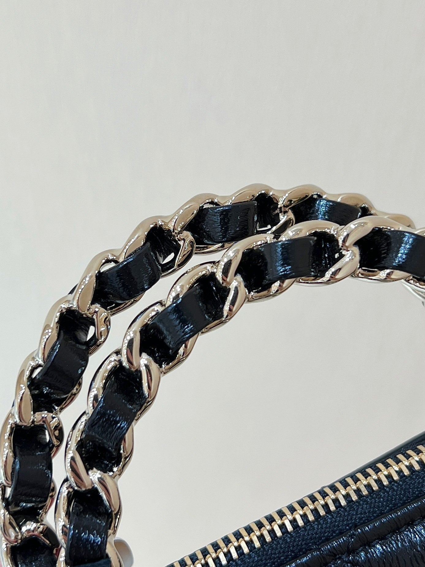 CC 24B AS5130 Small Shell Bag 20cm Black Polished Lambskin