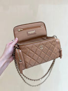 CC 24K Handle Camera Bag 23cm Brown Lambskin Light GHW