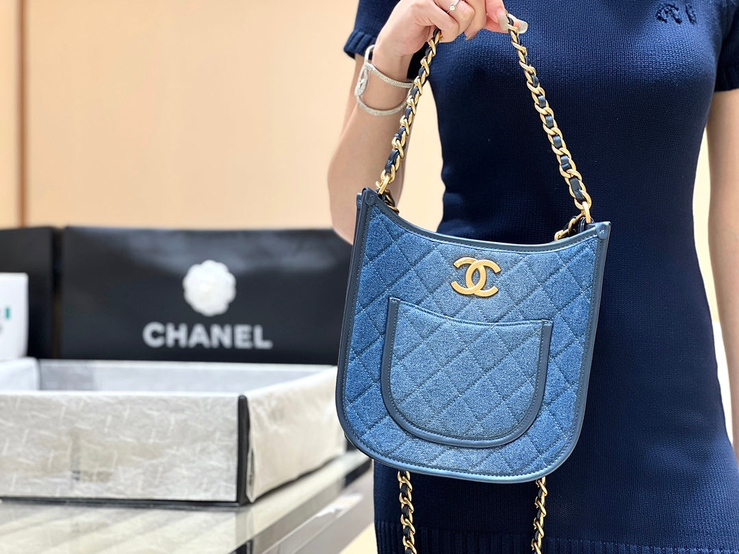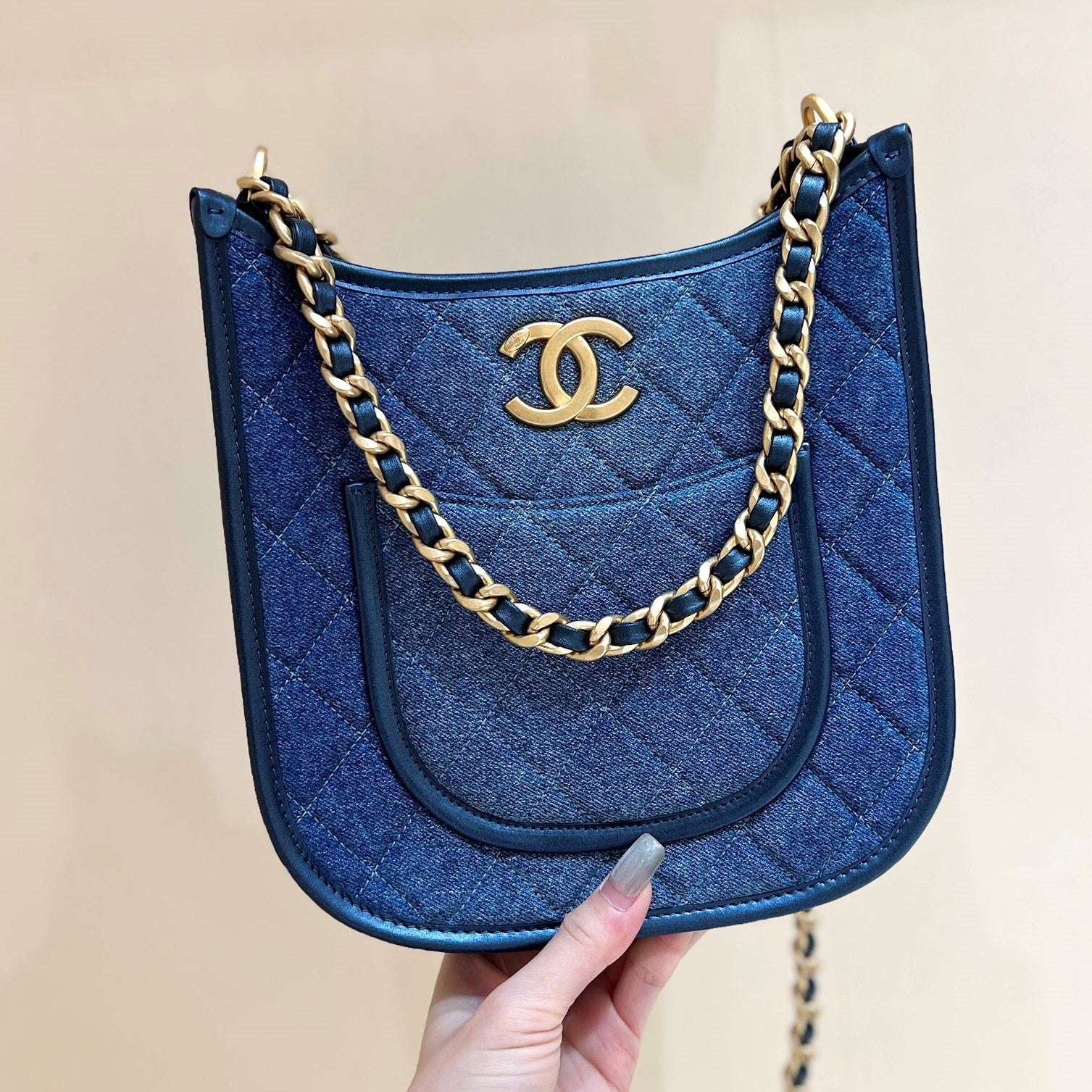 CC 24S AS4532 Shoulder Bag 22cm Blue Denim Light GHW
