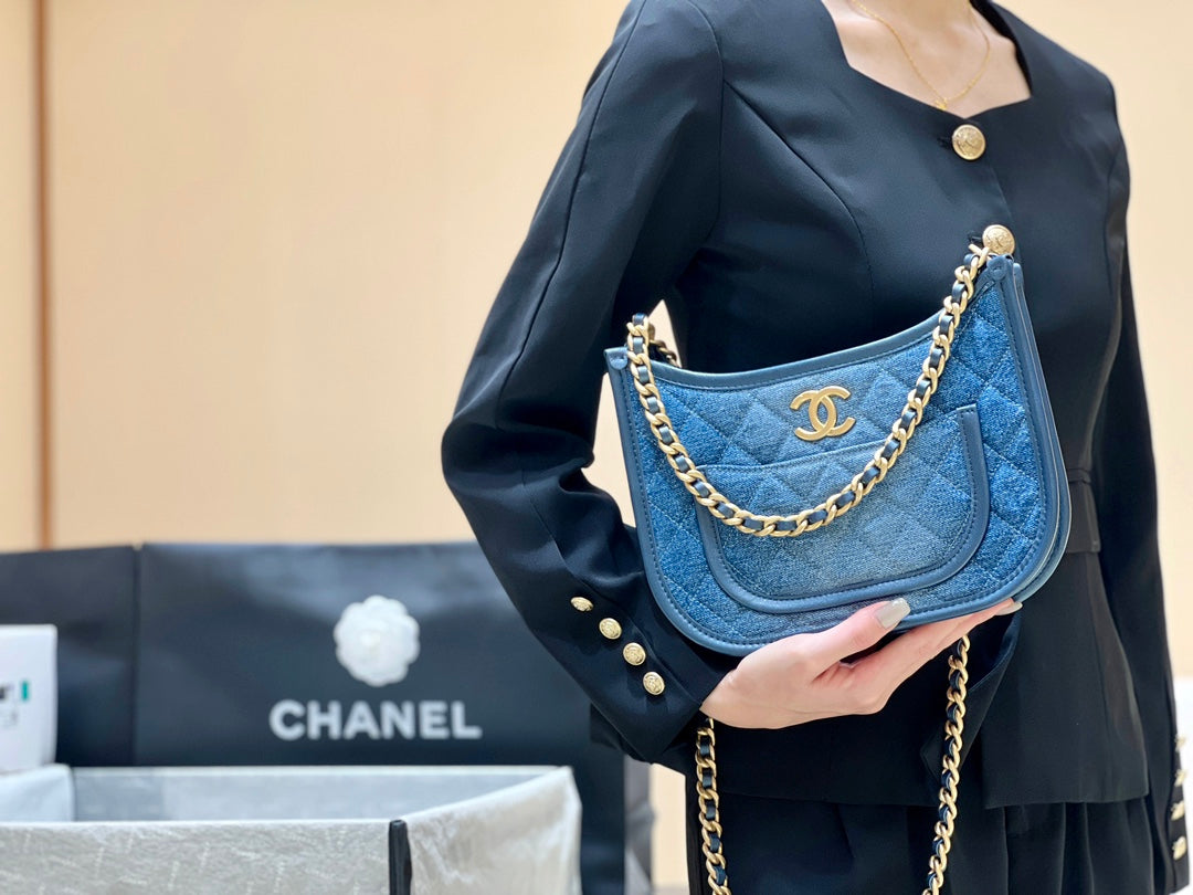 CC 24S AS4666 Shoulder Bag 24cm Blue Denim Light GHW