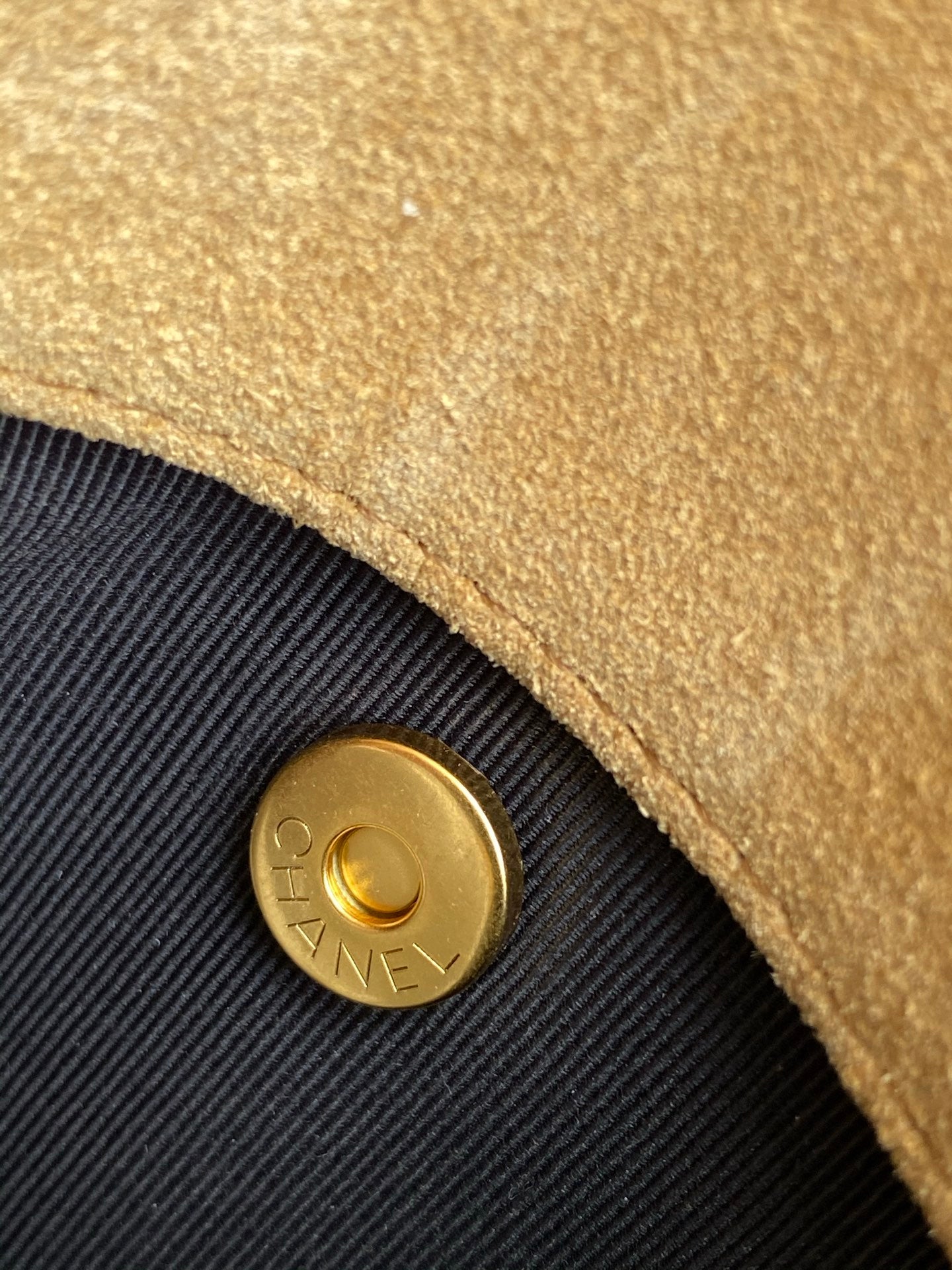 CC 25A Clutch With Chain 18cm Beige Suede Black Calfskin