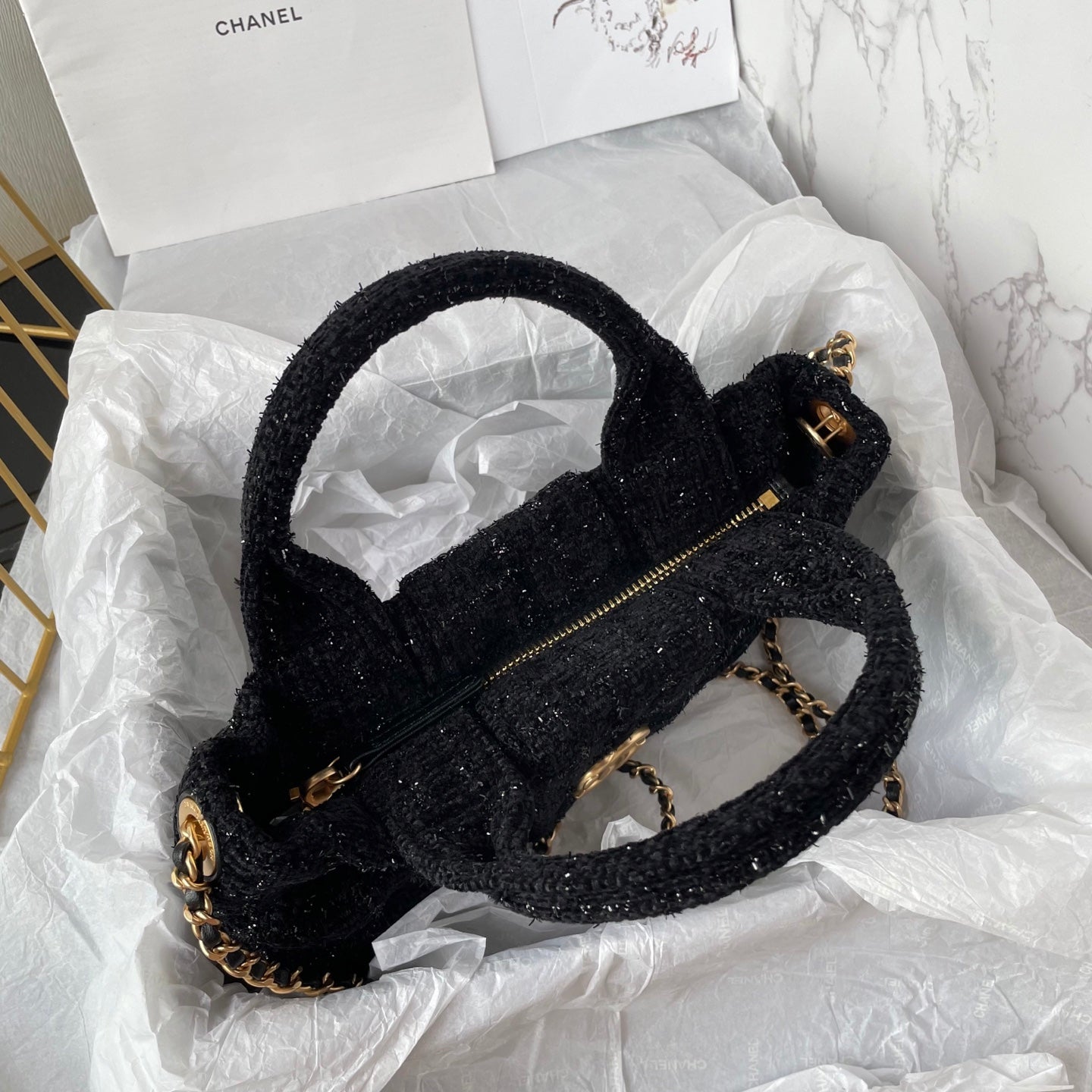 CC 25K Mini Bow Bag 26cm Black Tweed