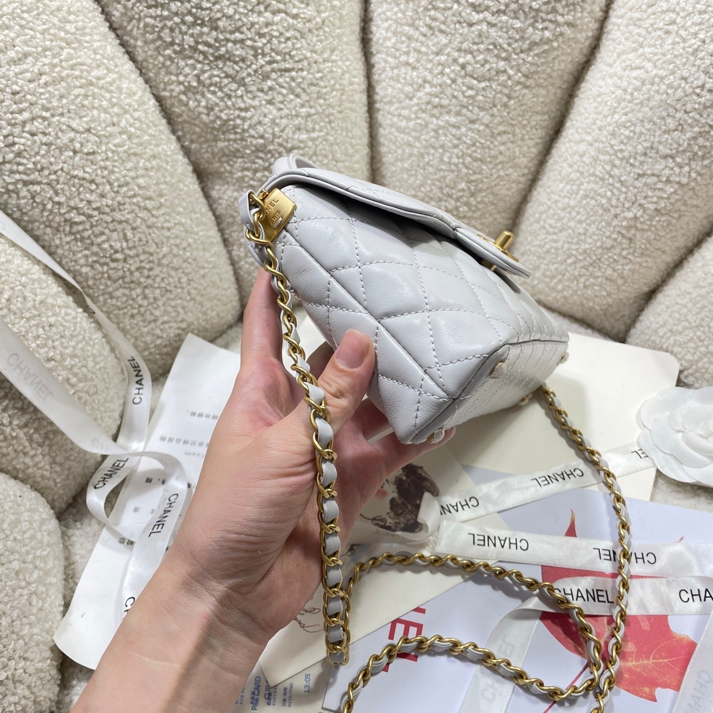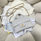CC 25P Mini Flap Bag 20cm Top Handle Grey Calfskin Gold Hardware
