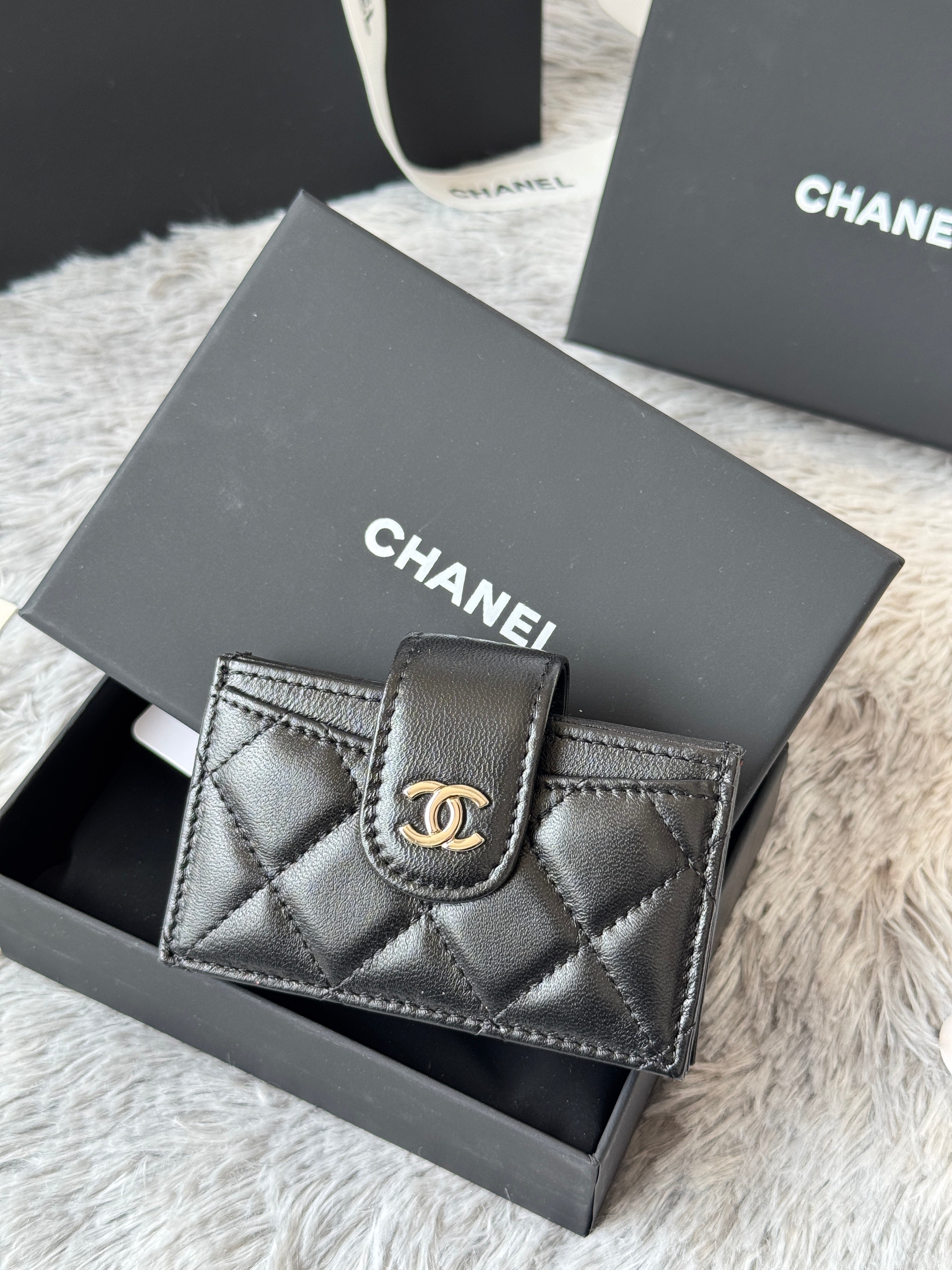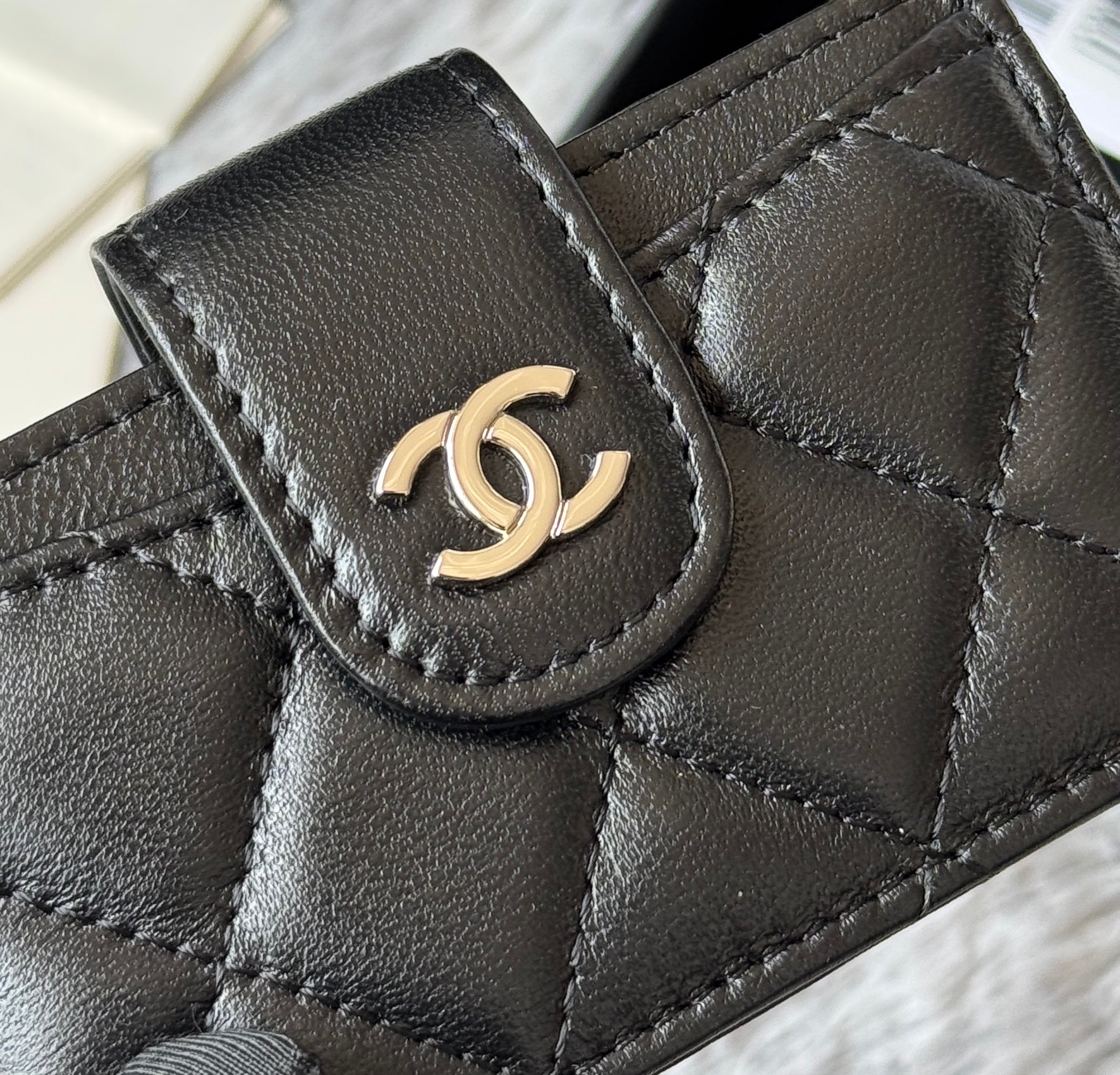 CC Accordion Card Holder Black Sliver-tone Metal Lamskin 242642