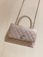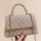CC Coco Hanle Small 23cm Light Beige Grained Calfskin Gold Hardware