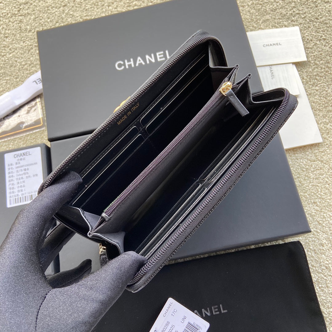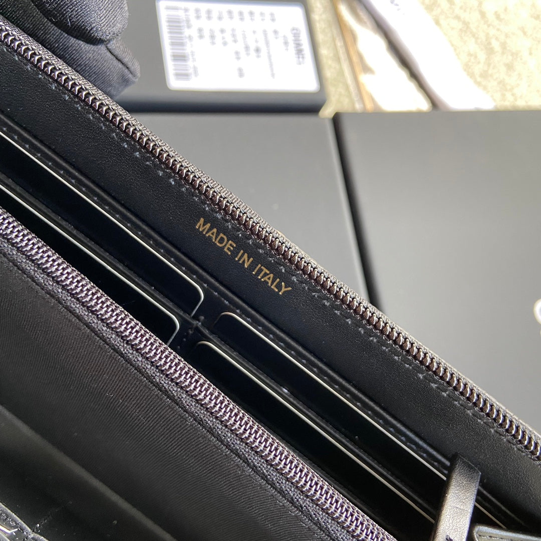 CC Gold Buckle Boy Zipper Coin Wallet Black Caviar 229739