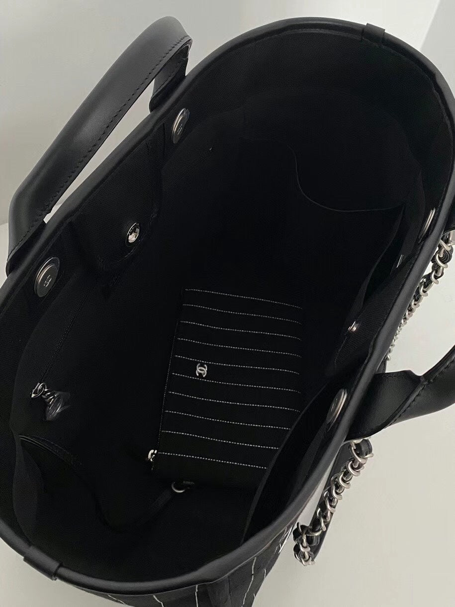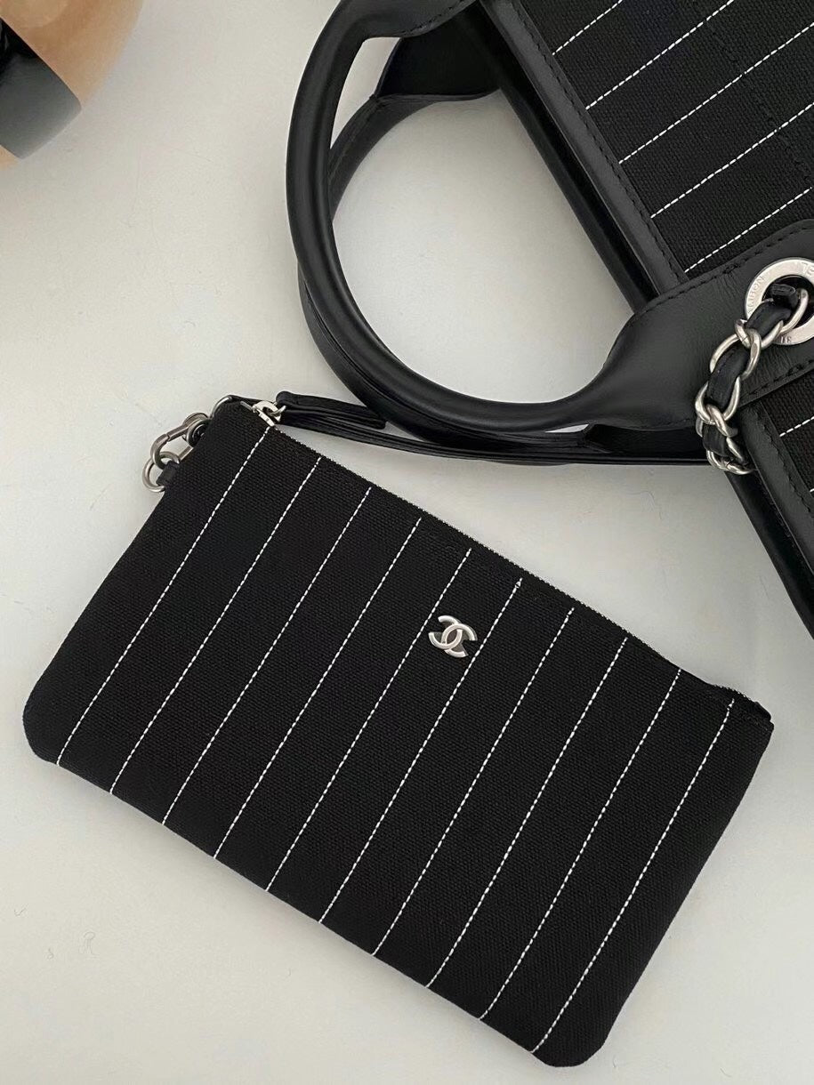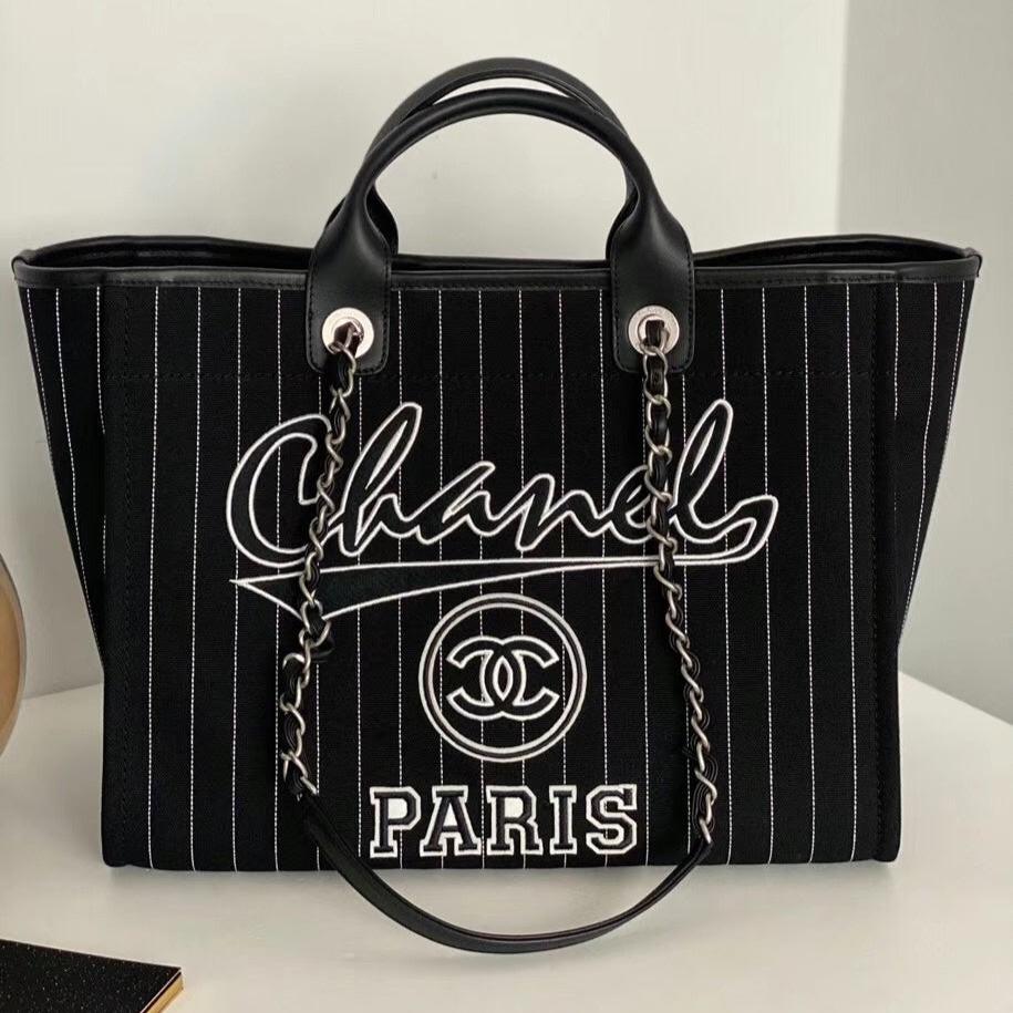 CC LARGE 50 TOTE BAG IN BLACK CANVAS WITH STRAP