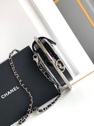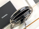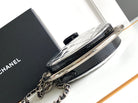 CC MINI 18 EARTH GLOBE ORB CHAIN BAG IN SILVER CALFSKIN