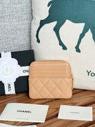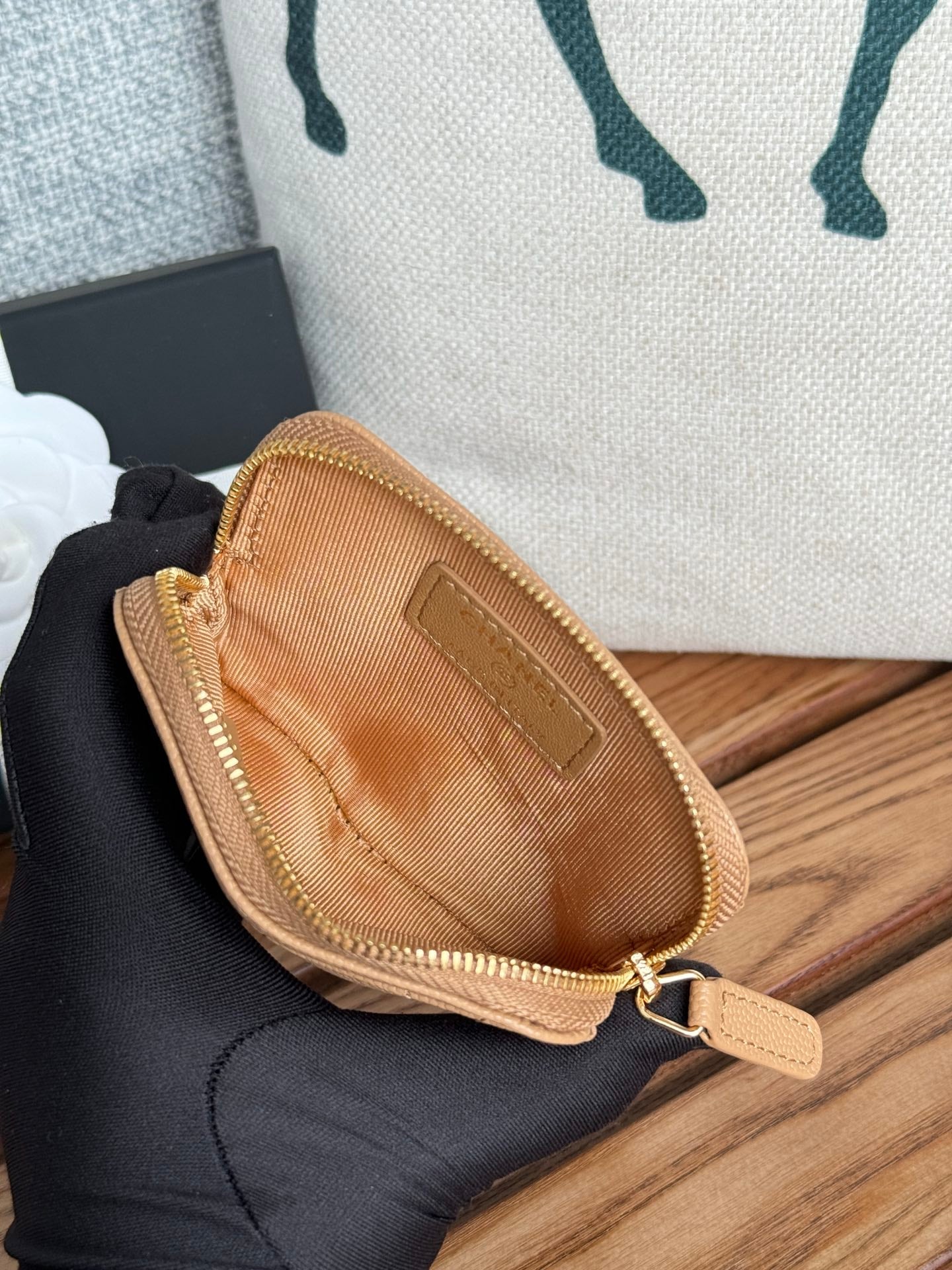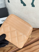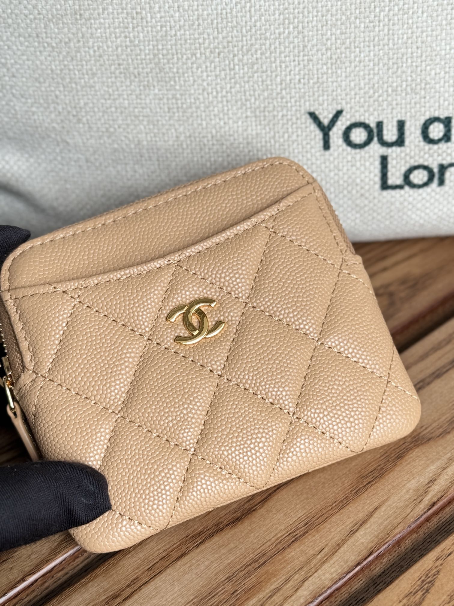CC Zip Card Holder Wallet Beige Gold Metal Caviar 240603