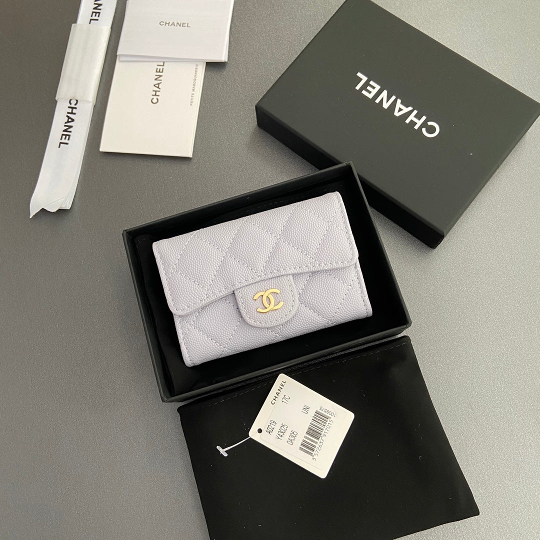 CC Zipper Flap Card Holder Light Purple Caviar GHW 234665
