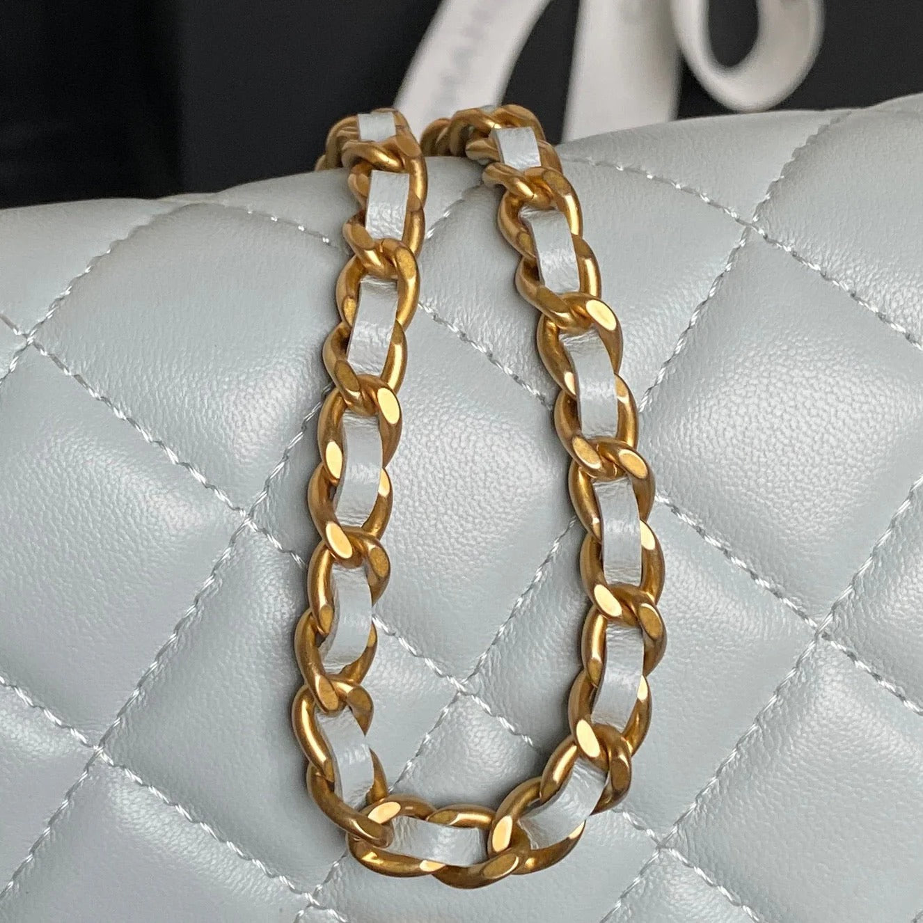 CHANEL 25S CHAIN WALLET 19 IN LIGHT BLUE LAMBSKIN GOLD HARDWARE