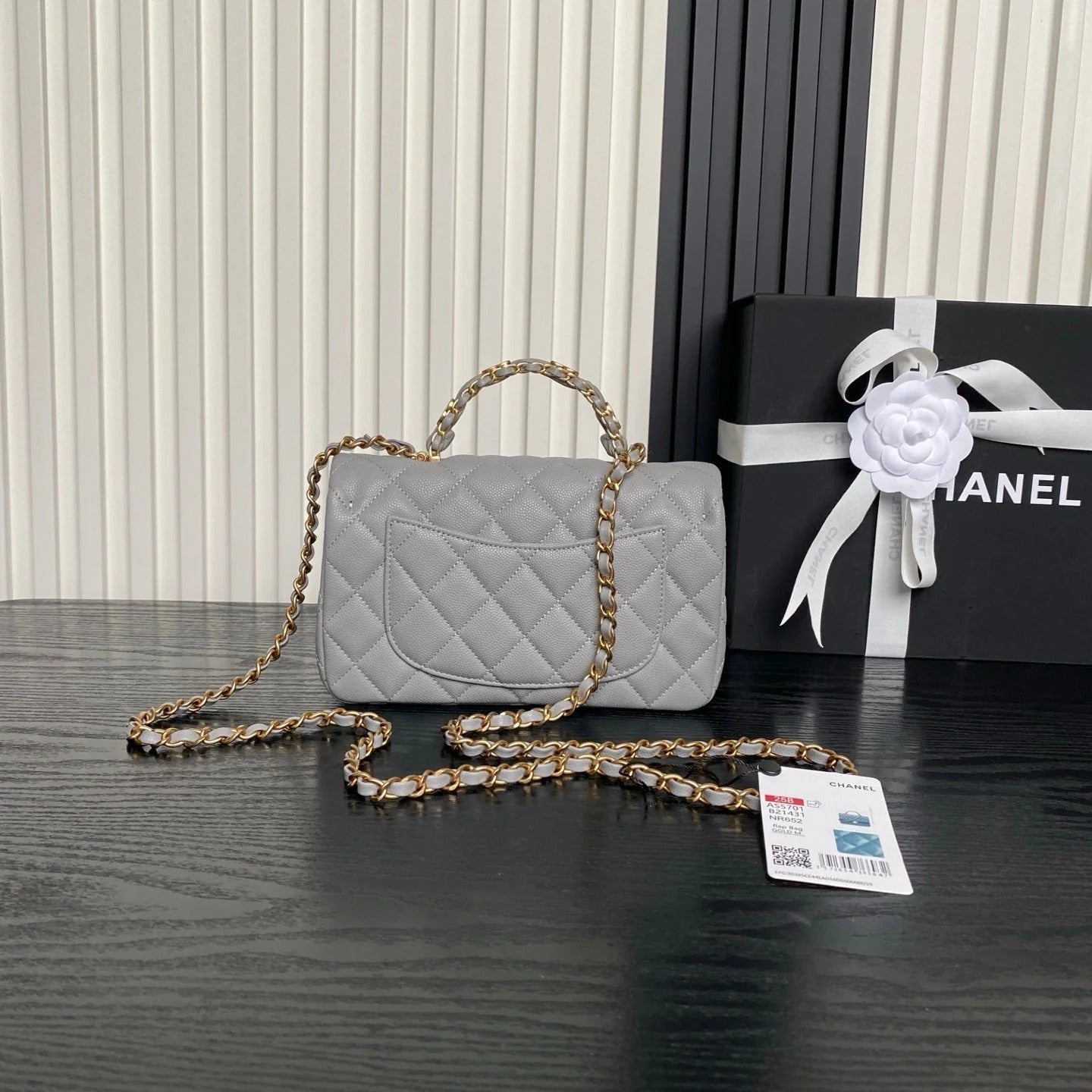 CHANEL 25S FLAP BAG 19 IN CHARCOAL GRAY CALFSKIN GOLD HARDWARE
