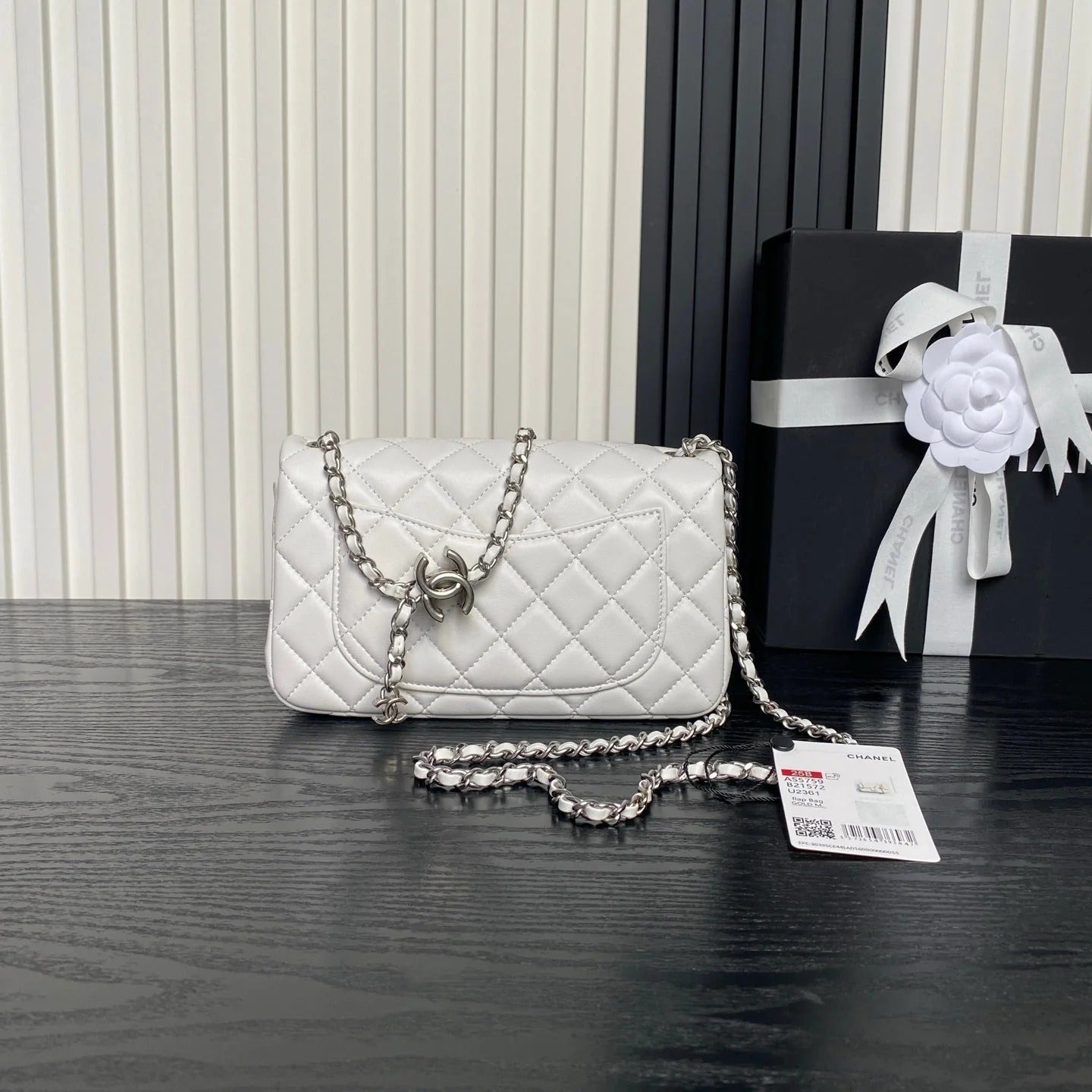 CHANEL 25S FLAP BAG 20 IN WHITE CALFSKIN SILVER HARDWARE