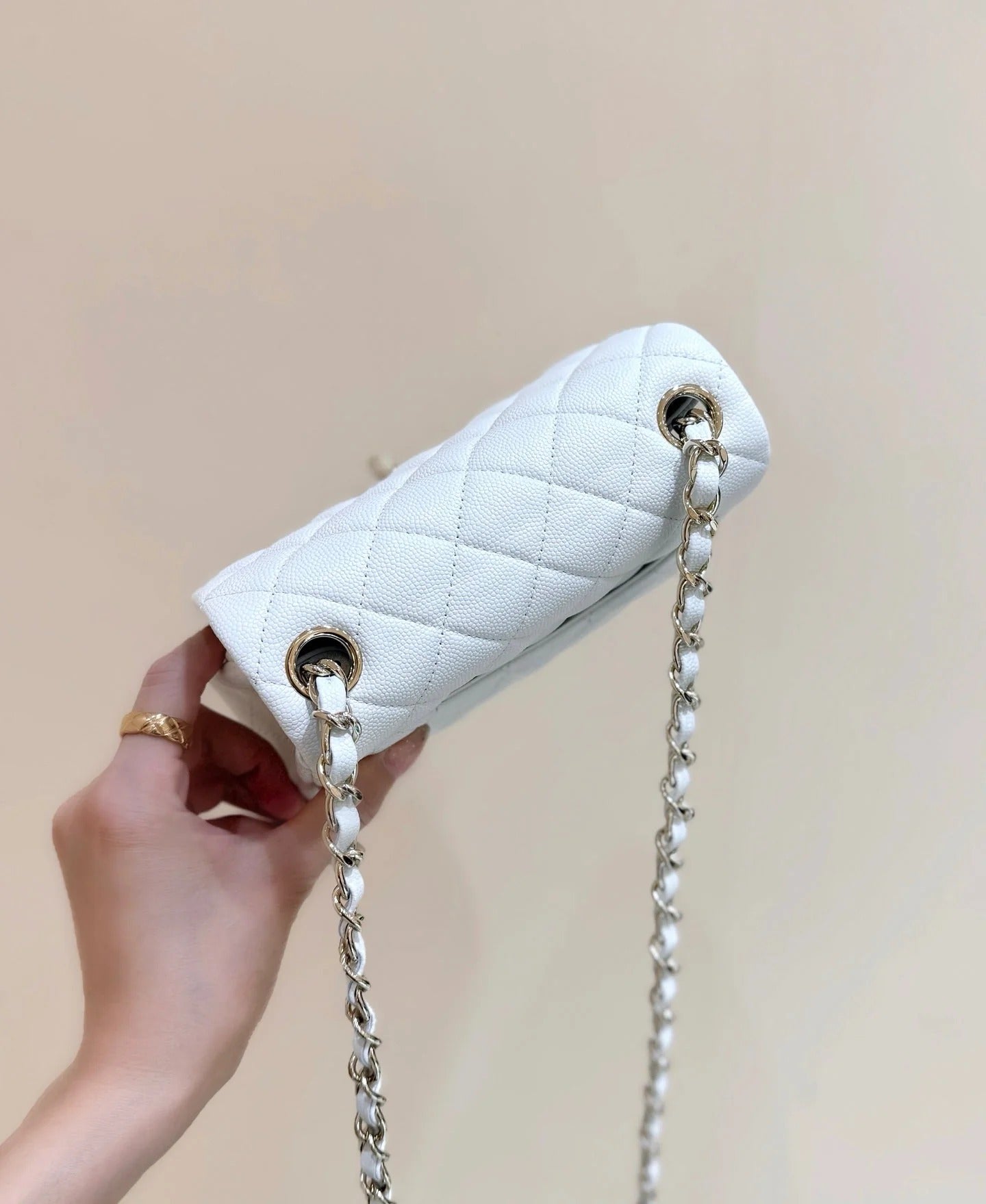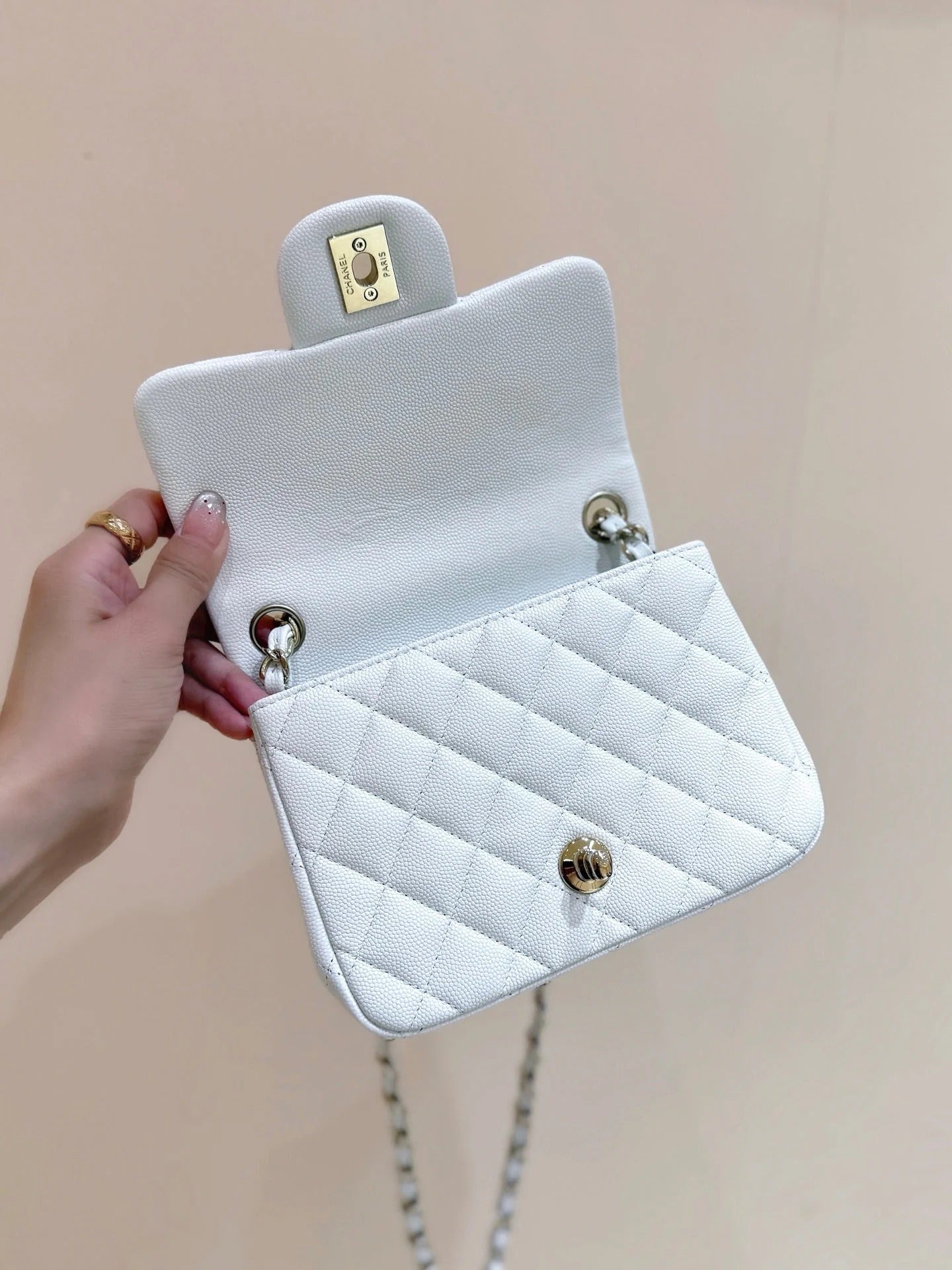 CHANEL 25S MINI SQUARE FLAP BAG 17 IN WHITE CALFSKIN CAVIAR GOLD HARDWARE