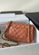 flap bag mini 20 brown lambskin gold hardware