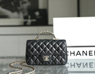 MINI RECTANGLE FLAP BAG TOP HANDLE 20CM BLACK LAMBSKIN SILVER HARDWARE