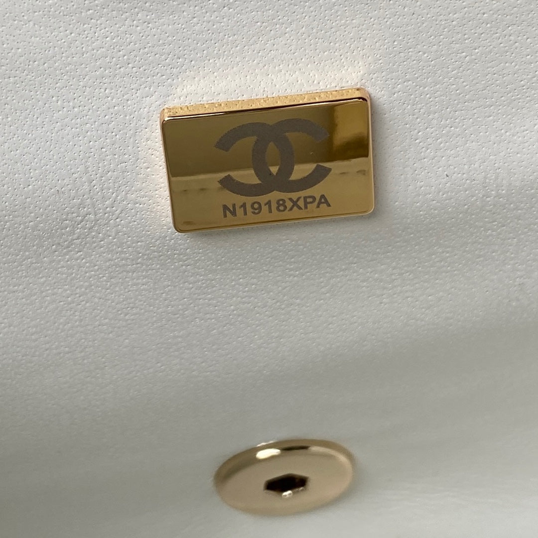 CC MEDIUM 22 FLAP BAG IN WHITE LAMBSKIN GOLD HARDWARE