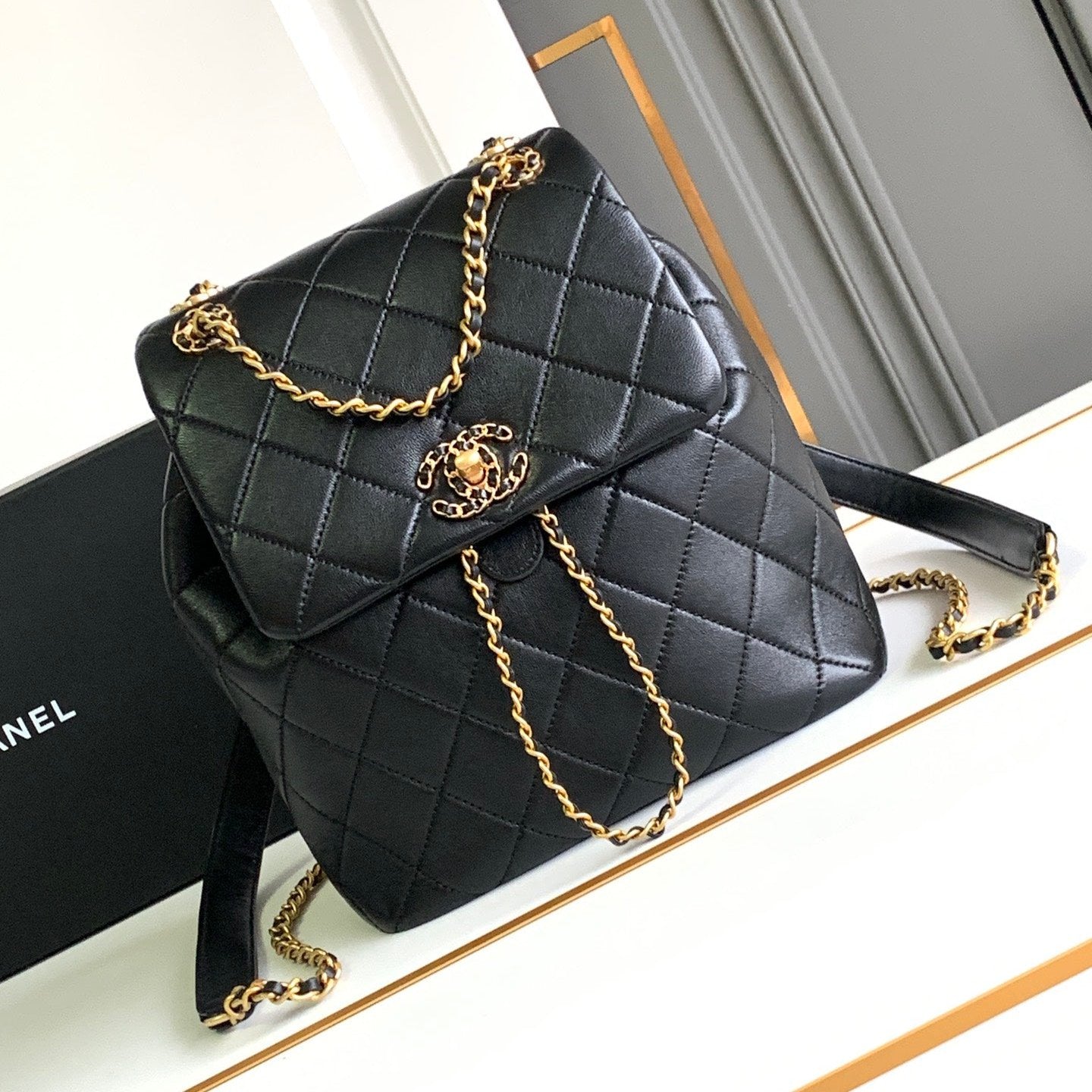 CC 25 BACKPACK IN BLACK CALFSKIN GOLD HARDWARE