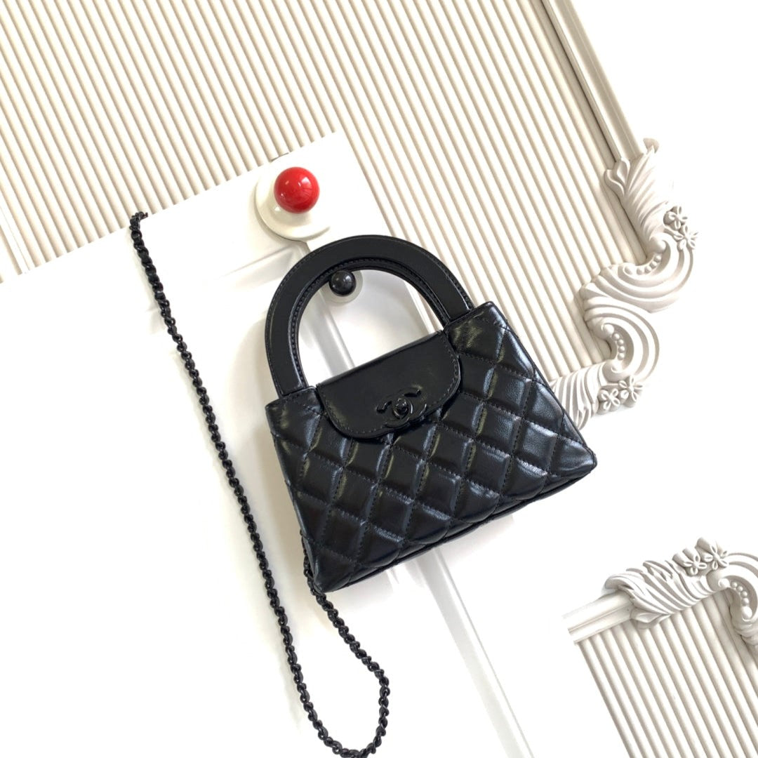 cc 24a nano 19cm kelly shopper bag lambskin black hardware