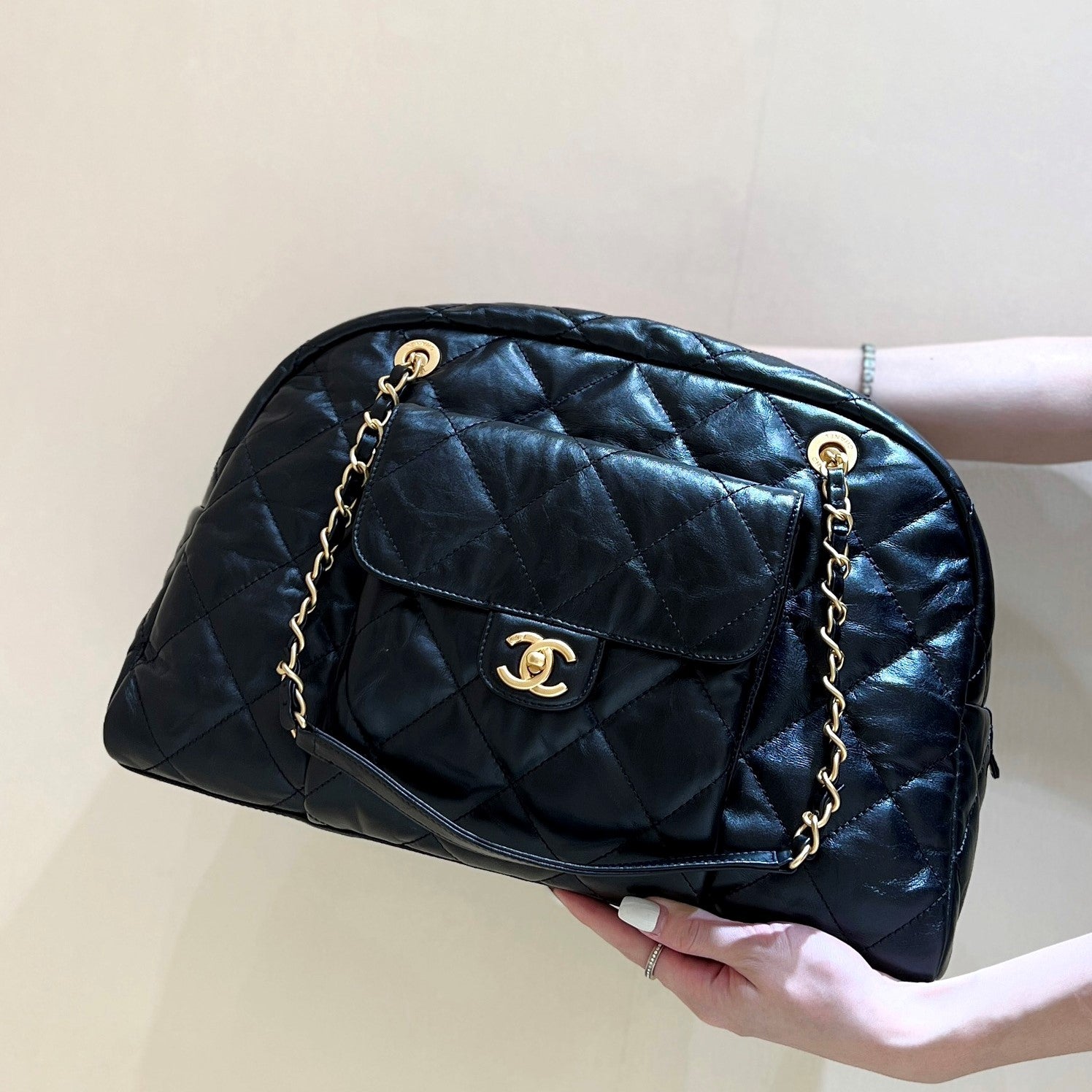 CC 24A Bowling Bag 44cm Black Wrinkled Calfskin GHW