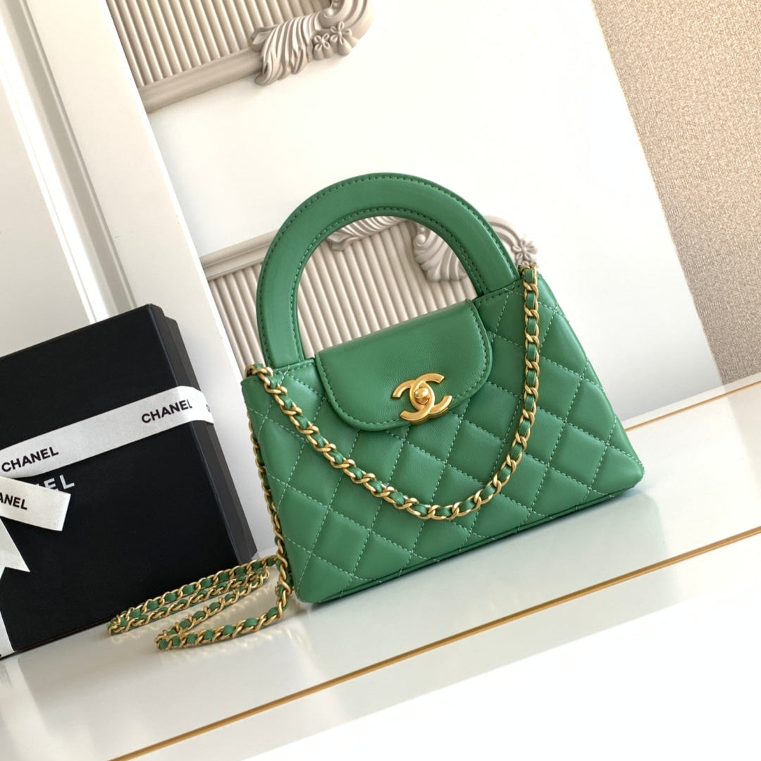 cc 24a nano 19cm kelly shopper bag light green lambskin