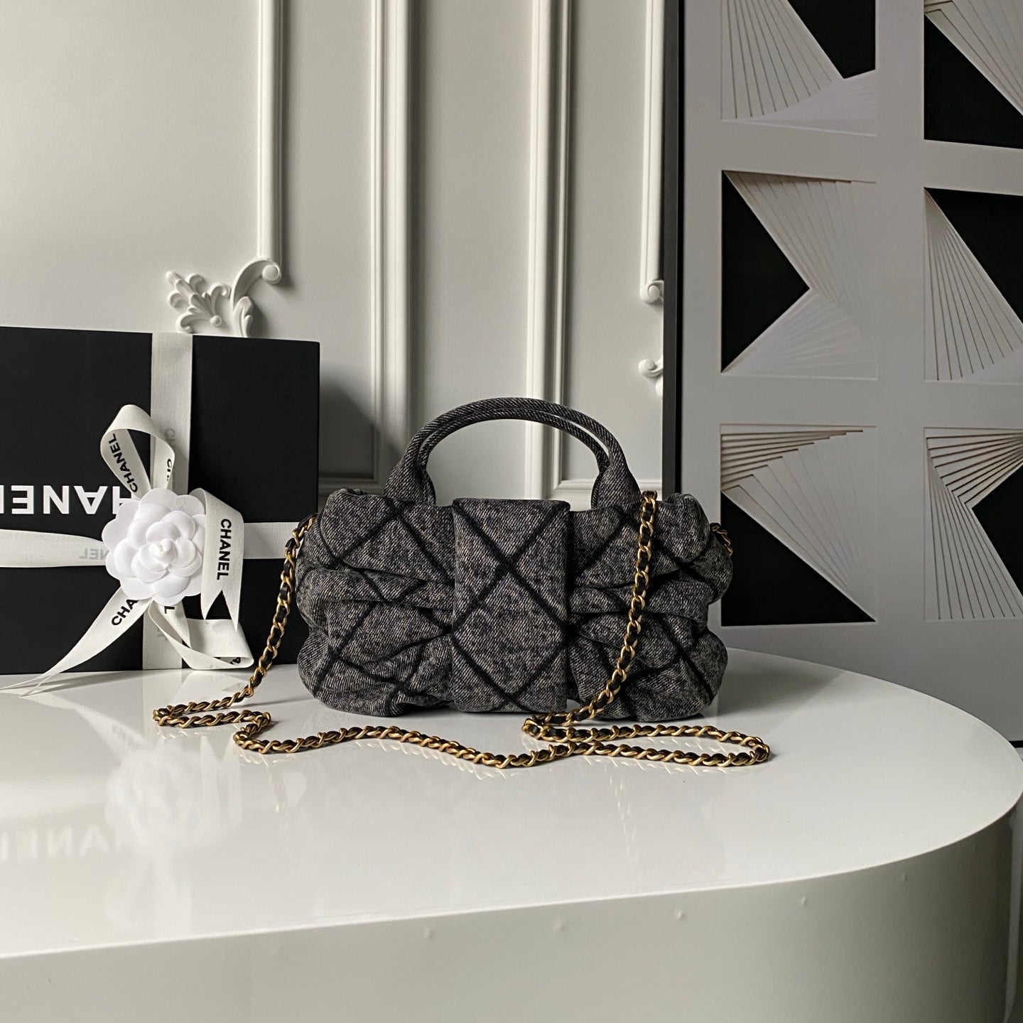 CC 25K Mini Bow Bag 26cm Black Denim