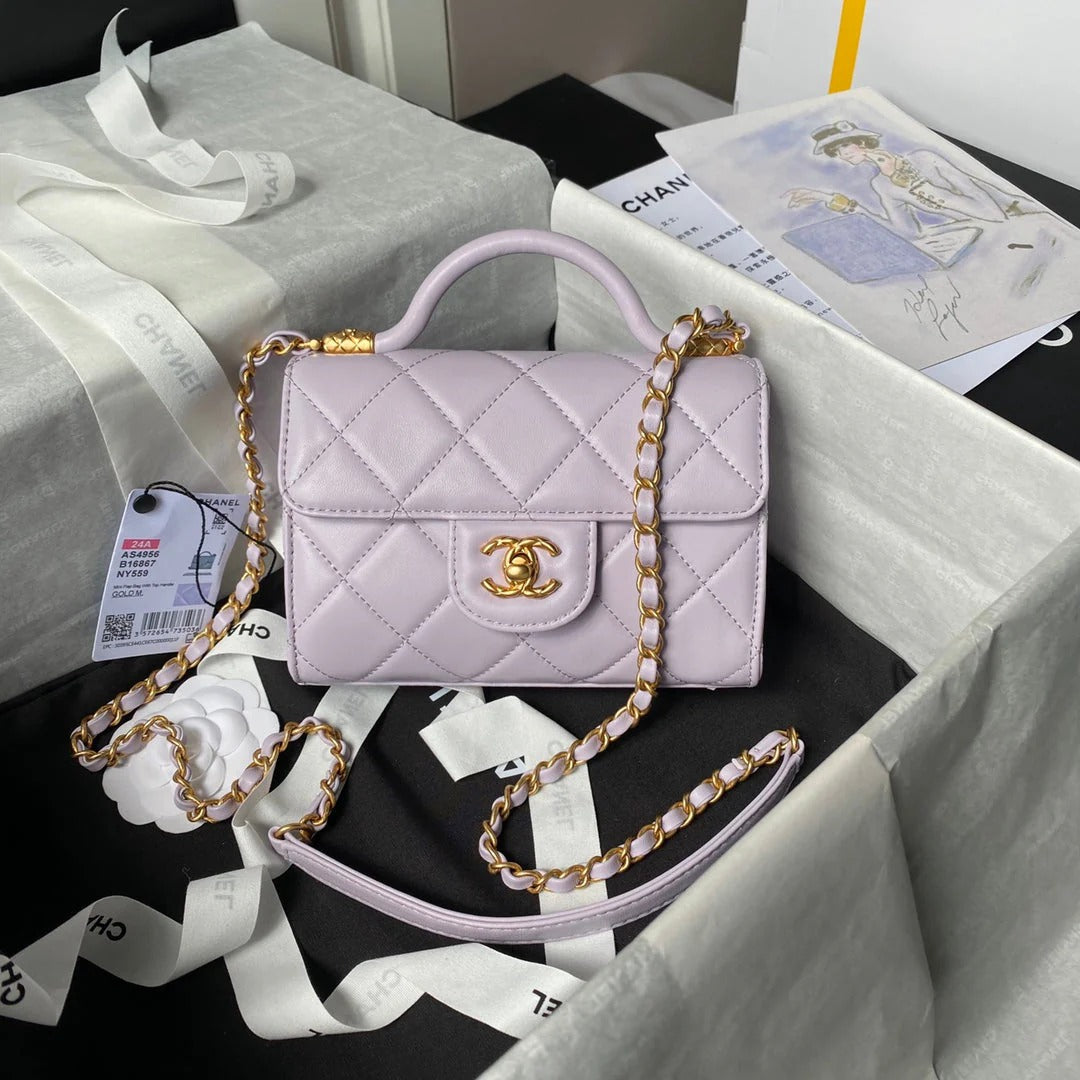 CC 25S FLAP BAG 21 CM IN LIGHT PURPLE LAMBSKIN WITH TOP HANDLE