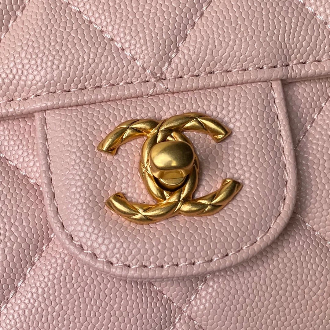 CC 25S FLAP BAG 21 CM IN LIGHT PINK GRAINED LAMBSKIN WITH TOP HANDLE