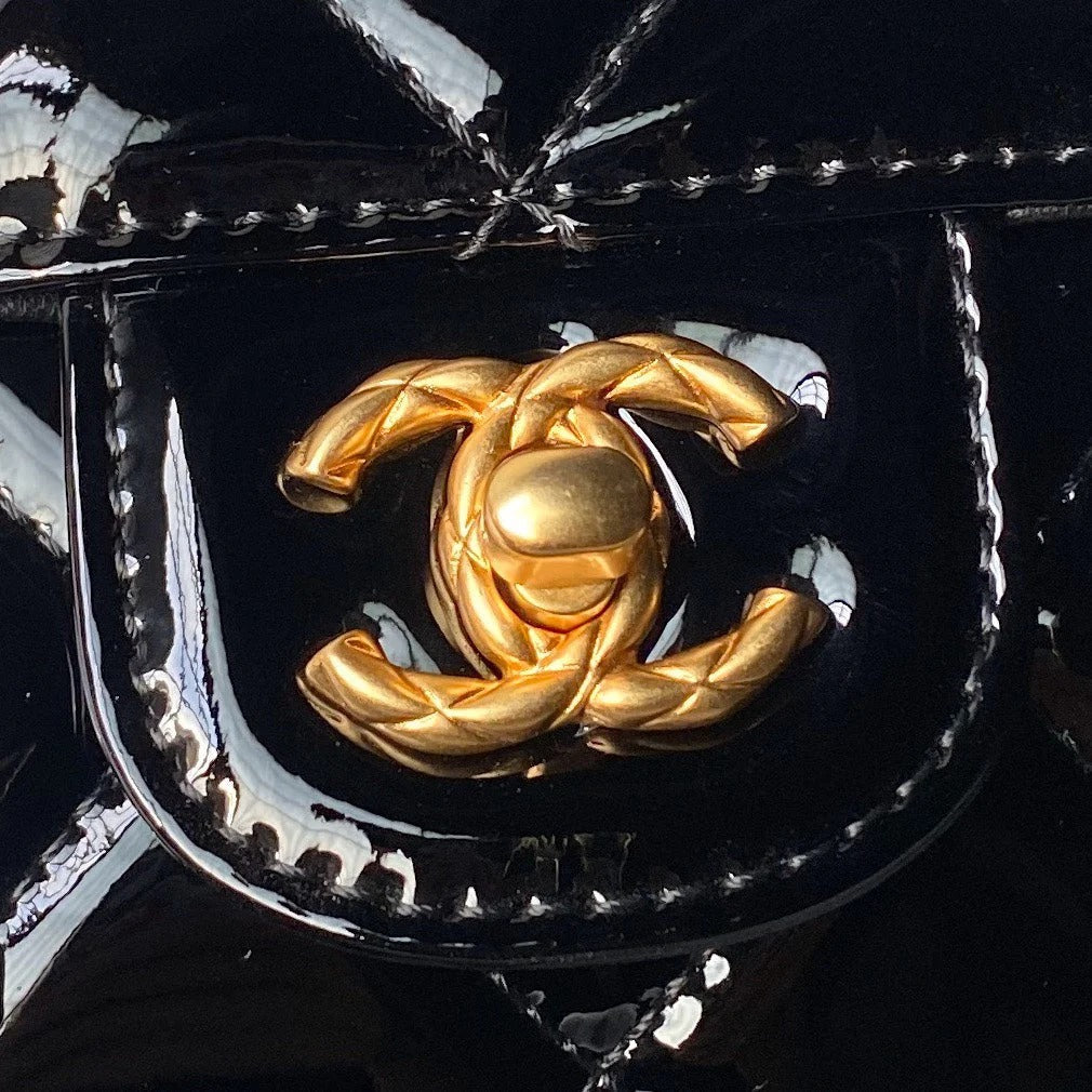 CC 25S FLAP BAG 18 CM IN BLACK PATENT LAMBSKIN WITH TOP HANDLE