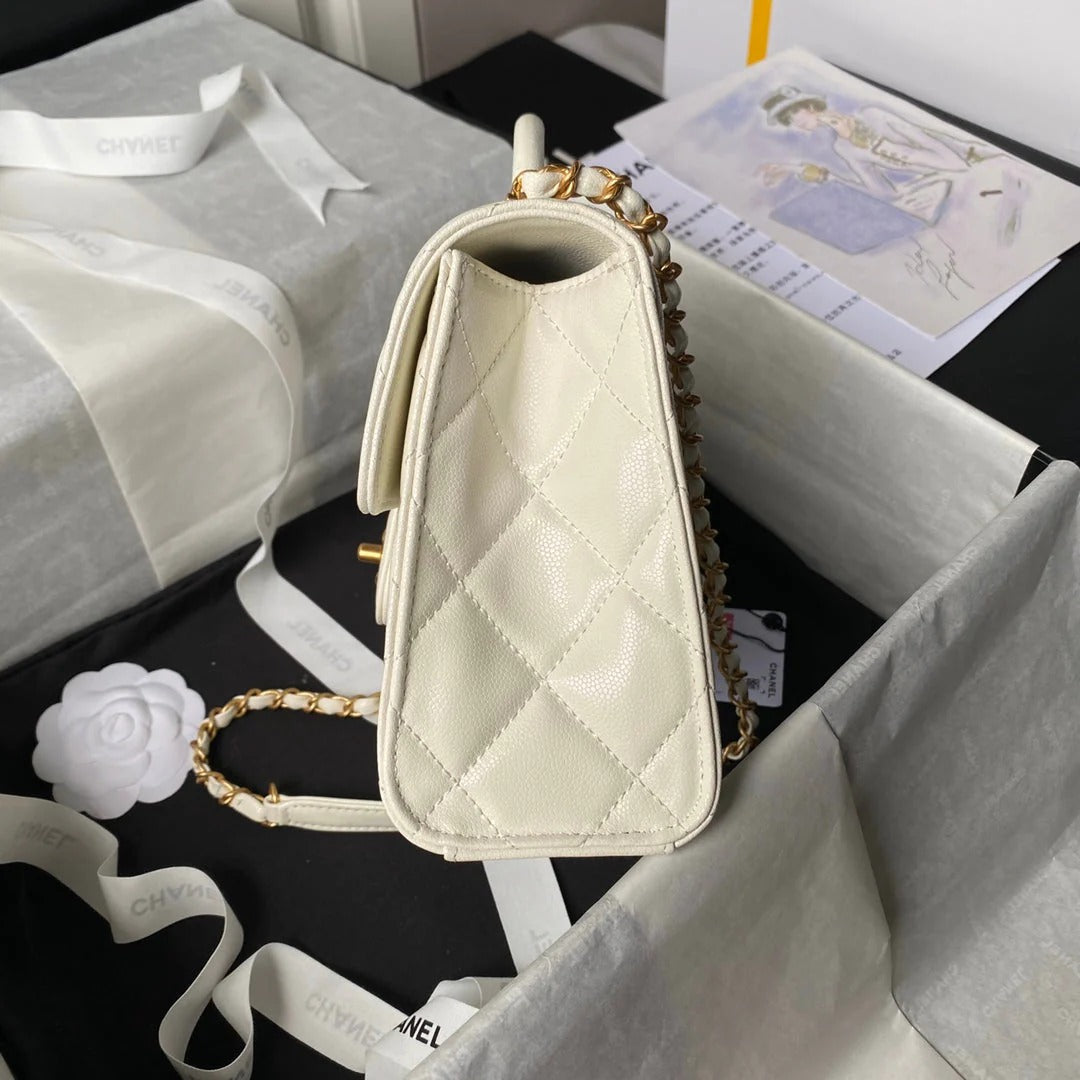 CC 25S FLAP BAG 21 CM IN CREAM WHITE GRAINED LAMBSKIN WITH TOP HANDLE