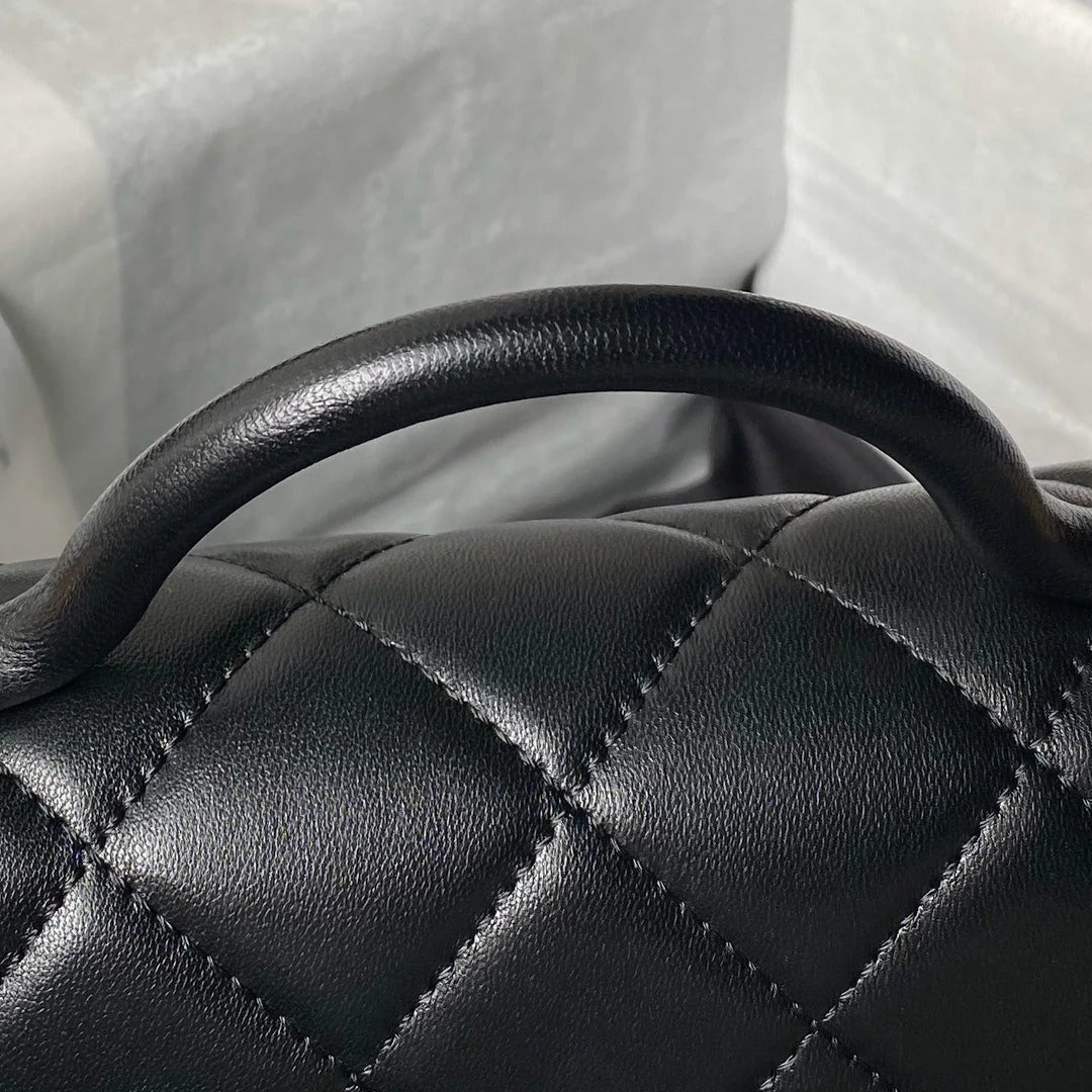 CC 25S FLAP BAG 18 CM IN BLACK LAMBSKIN WITH TOP HANDLE