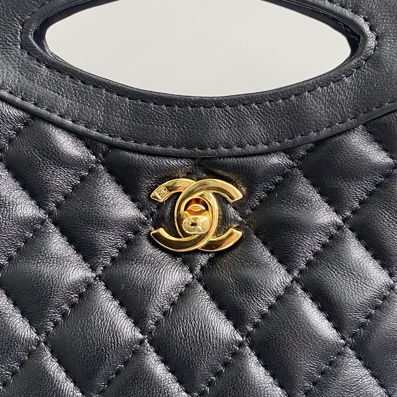 CC 19 TOTE 33CM BLACK LAMBSKIN GOLD HARDWARE