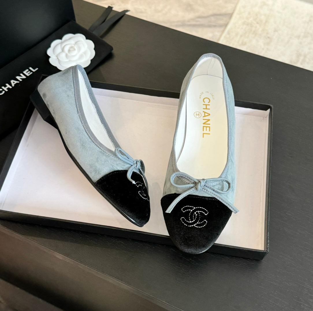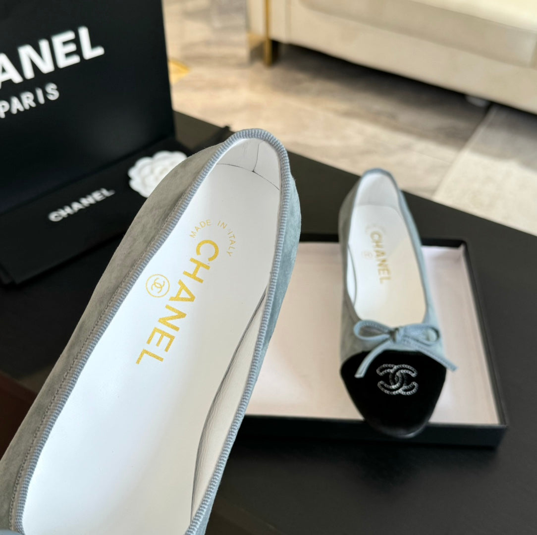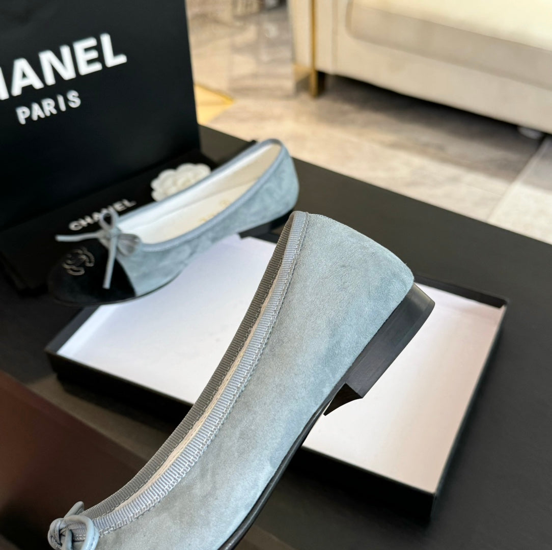 ballet flat cloud blue suede black canvas