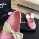 BALLET FLAT LIGHT PINK LAMBSKIN WITH WHITE BOW