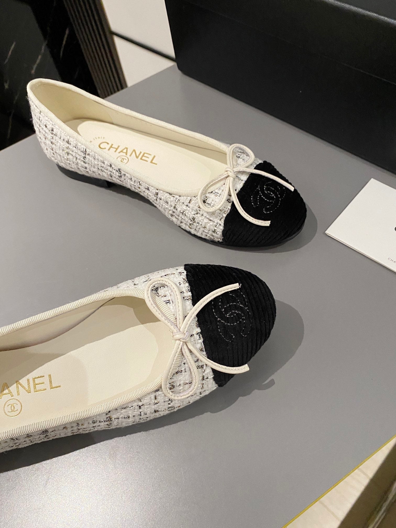 ballet flat white brown tweed black velvet