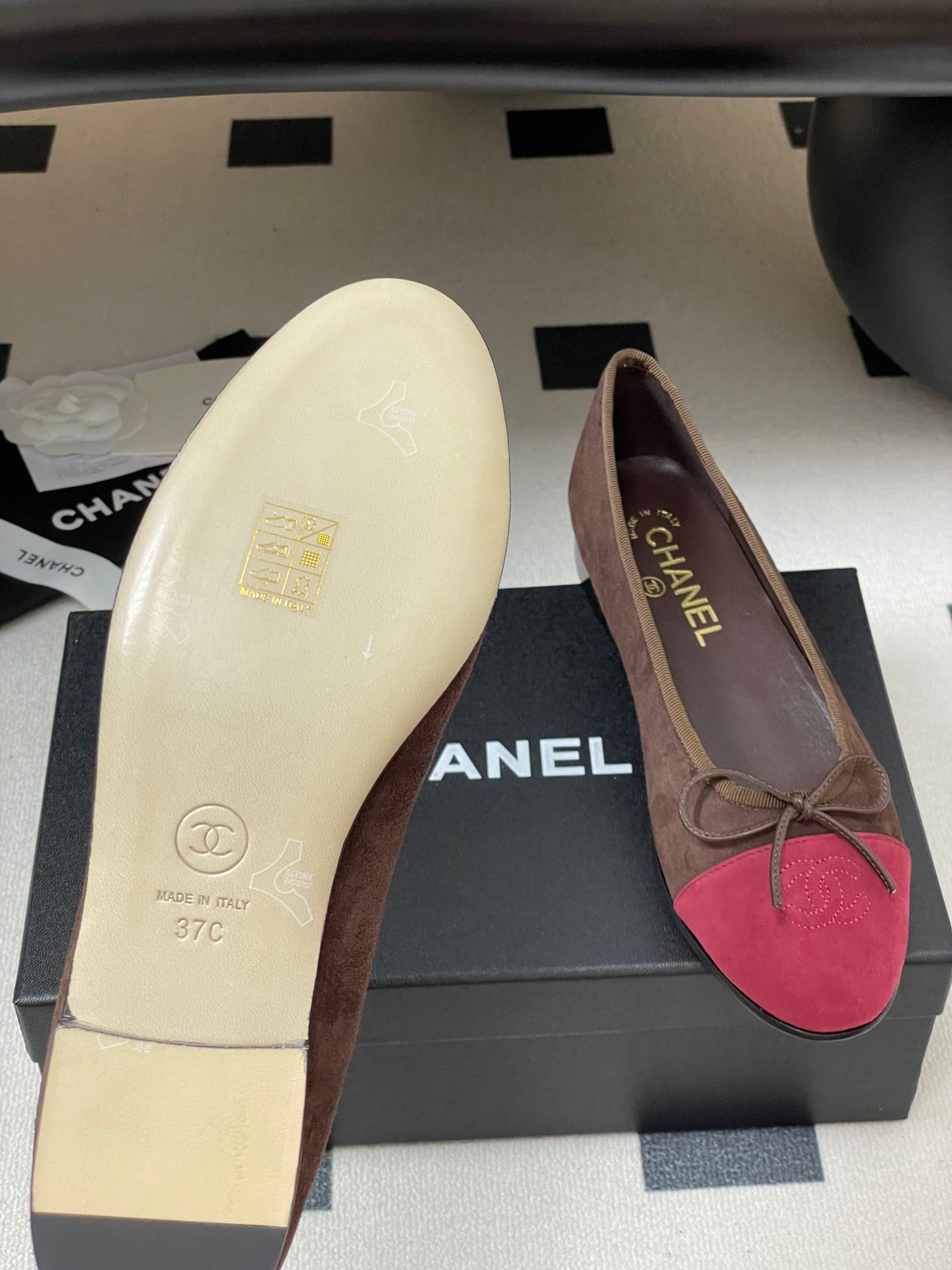 CC 25 Ballet Flat Chocolate Dark Red Suede 393996
