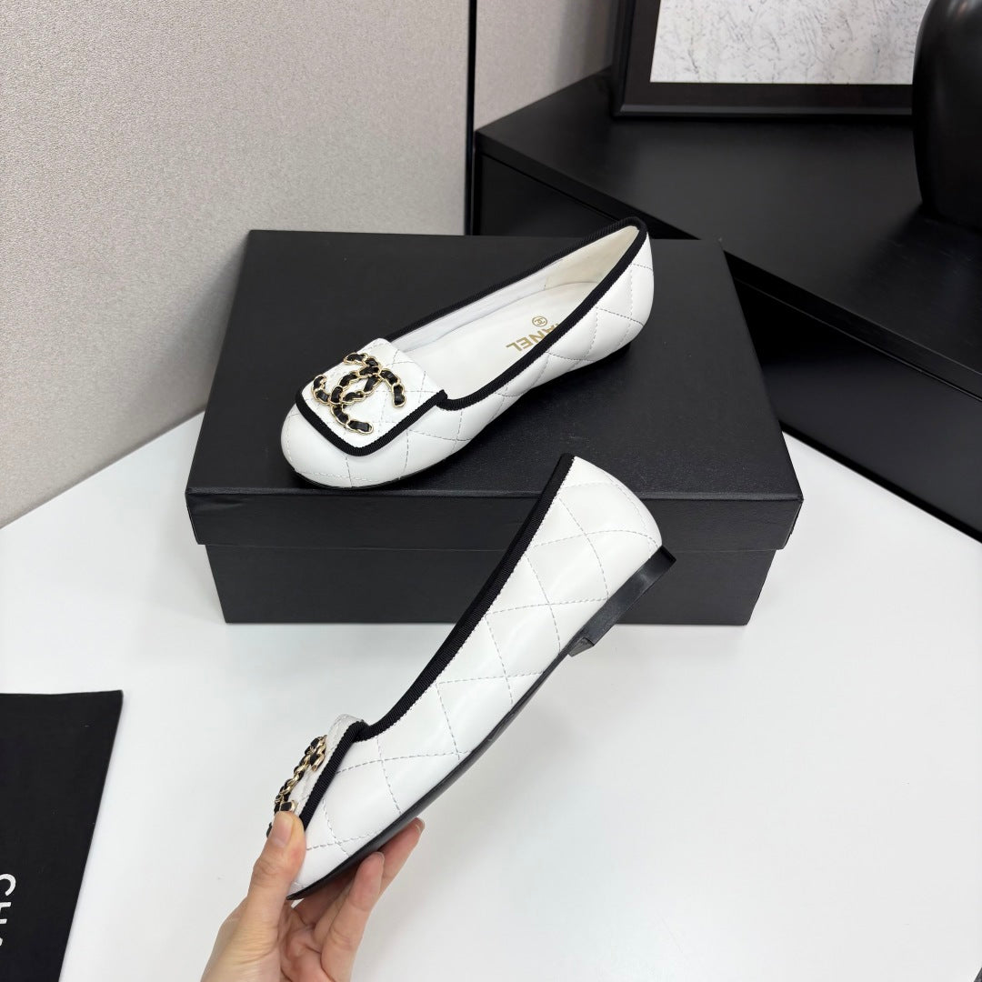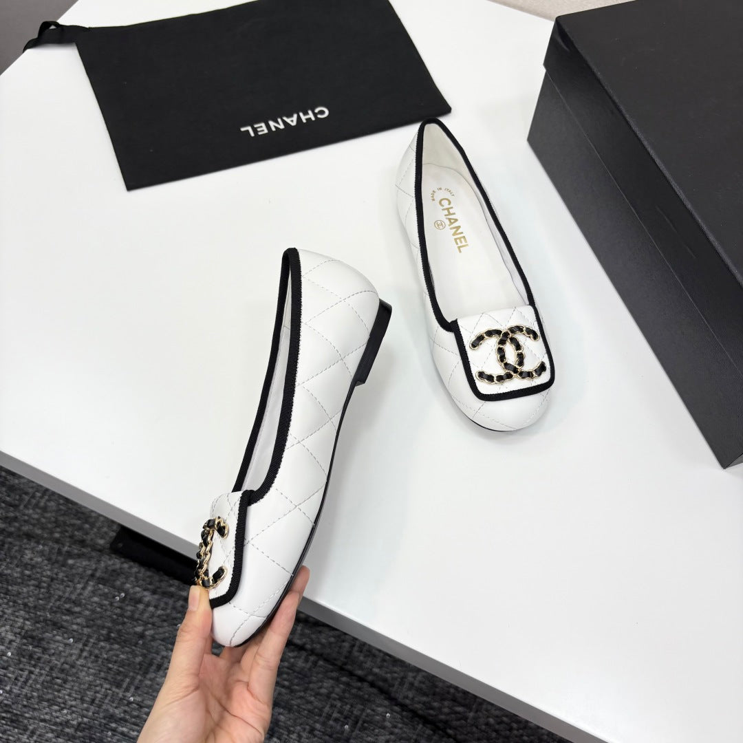 CC 25 Ballet Flat Large Logo White Quilted Calfskin