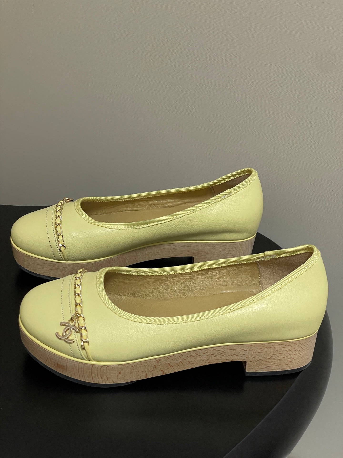CC 25A Chain CC Thick-Soled Shoe 40mm Pastel Yellow Sheepskin 393952
