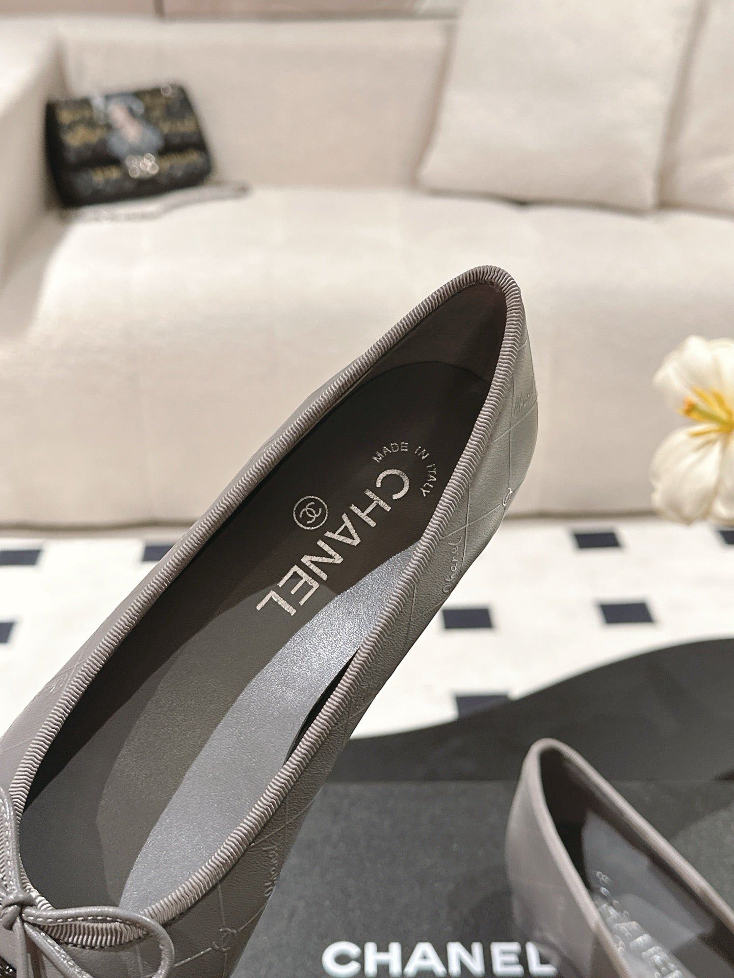 cc 25c ballet flat cross line pattern grey lambskin 237481