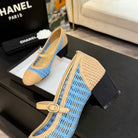 CC 25P Mary Jane 50mm Beige Blue Raffia 373789