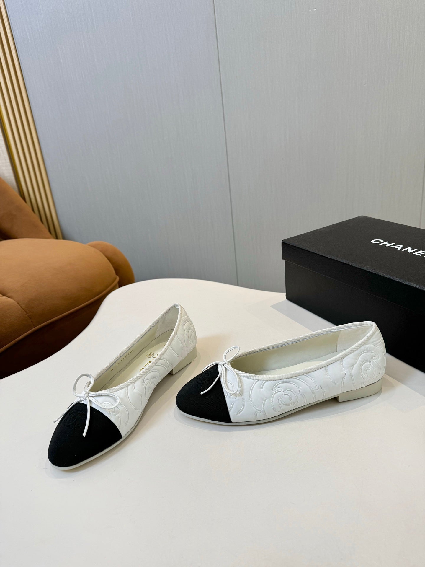 CC 25ss Métiers d’art Ballet Flats 10mm Black White Fabric Grosgrain 417039