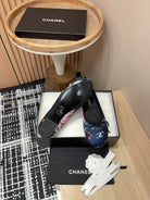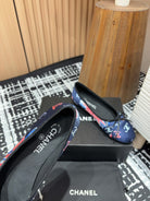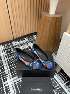 CC Ballet Flats Dark Blue Silk Flowers And Lambskin
