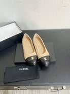 CC Ballet Flats In Beige Mix Black Quilted Lambskin 949713